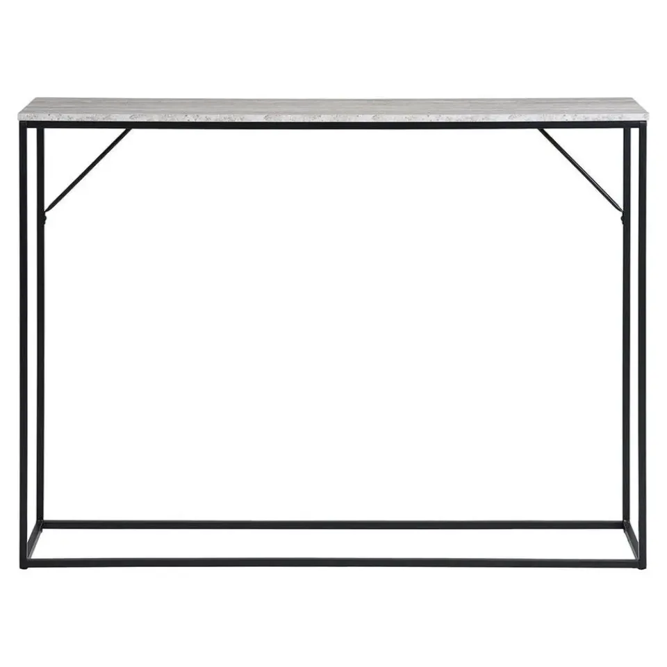 Deze consoletafel combineert een ruw betonoppervlak met een stijlvol metalen frame, waardoor hij een moderne en industriële uitstraling krijgt. De slanke constructie maakt de tafel perfect voor smalle ruimtes zoals entrees of gangen, waar hij zowel als decoratief element als praktische opbergruimte kan worden gebruikt. Het eenvoudige ontwerp maakt het mogelijk om te combineren met verschillende stijlen en interieurthema’s, van een minimalistische woning tot een meer rustiek huis.
