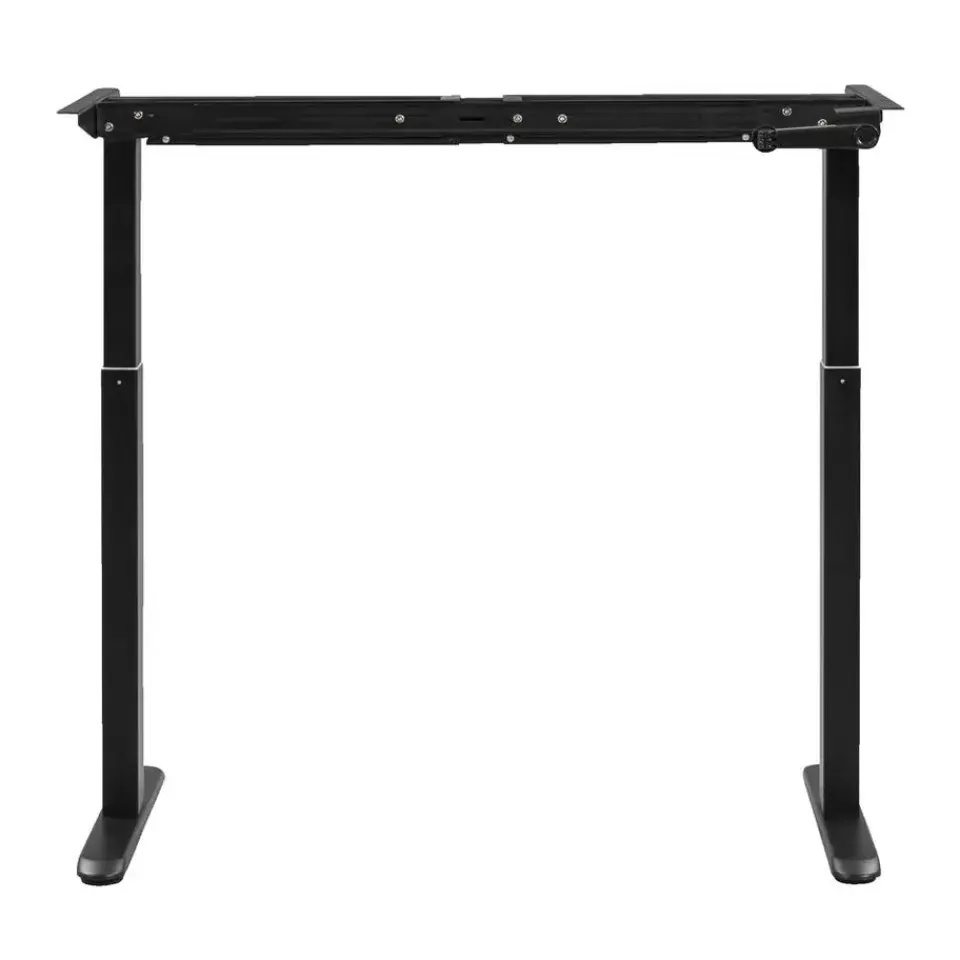 De minimale hoogte is 72,5 cm en je kan het bureau gemakkelijk verstellen tot een hoogte van 115,5 cm. Het heeft een draagvermogen van 50kg. De hendel om het bureau in hoogte te verstellen is zowel links als rechts te plaatsen.