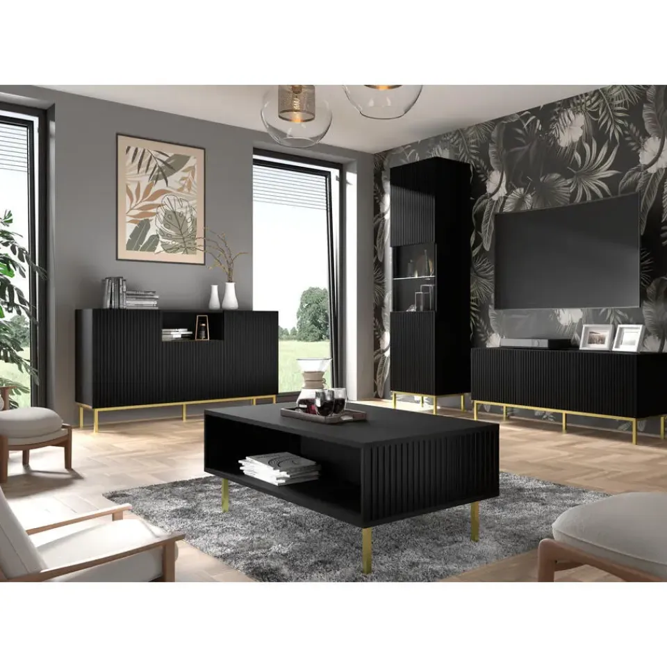 Meubels uit de Ravenna-collectie staan bekend om hun elegantie en unieke uitstraling. Ze zijn geschikt voor moderne, Italiaanse en minimalistische inrichtingen. De eenvoudige vormen en greeploze fronten passen perfect bij subtiele frezingen. Deze bijzondere decoraties transformeren de sfeer van een woonkamer of eetkamer met een design dat aansluit bij de nieuwste trends. Metalen poten ondersteunen het corpus en voegen stabiliteit en karakter toe. De Ravenna-serie biedt niet alleen stijlvol ontwerp, maar ook hoogwaardige kwaliteit, functionaliteit en gebruiksgemak. Het meubilair is uitgerust met een “push to open” systeem voor comfortabel openen.