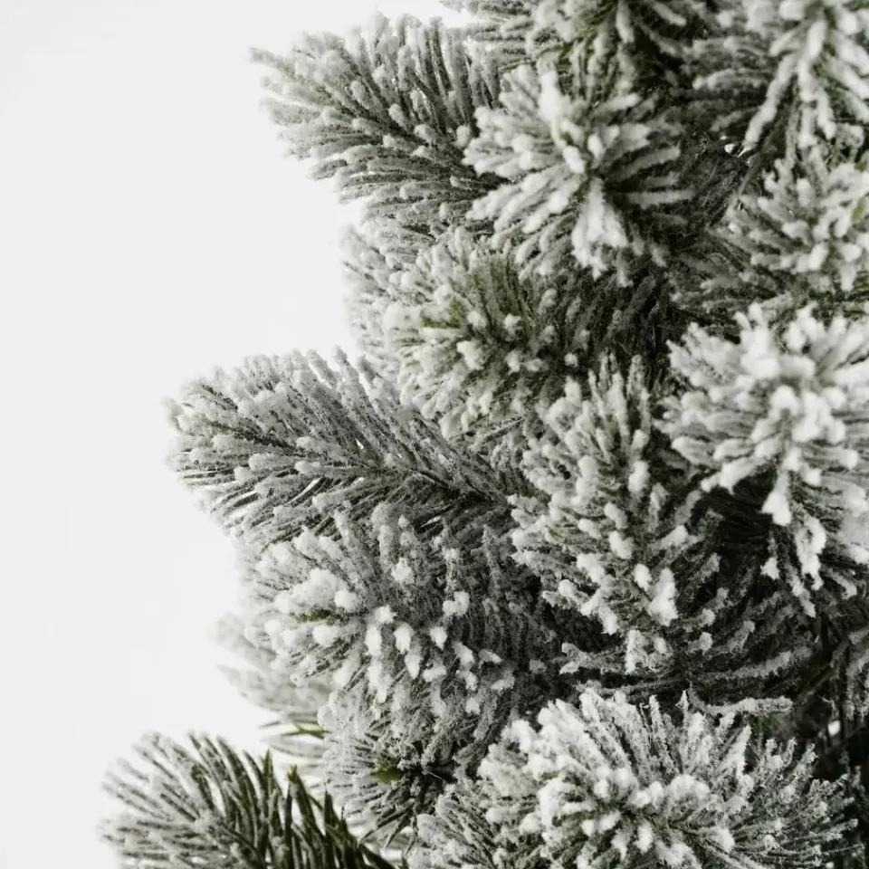 Deze kleine kunstkerstboom komt uit de collectie van House of Seasons. Hij heeft het uiterlijk van een echt dennenboompje, maar biedt de voordelen van een kunstboom. De naalden hebben een mooie besneeuwde afwerking. Daarnaast is de kleine kunstboom ook ideaal wanneer je niet veel ruimte hebt. De takjes van deze kunstkerstboom zijn bijna niet van echt te onderscheiden! Dit komt doordat de naalden zijn gemaakt van PE: het beste materiaal om een natuurlijke look te creëren. Voorgevormd in een mal lijken ze precies op een voorbeeld uit de natuur! Je kunt de takken van de kunstboom gemakkelijk uitvouwen, waardoor je extra veel tijd hebt om hem mooi te decoreren. De voet is in elk geval al mooi weggewerkt in jute. De kunstkerstboom is verkrijgbaar in verschillende afmetingen. Dit model is H60 x Ø30 cm en heeft 105 takken. Ook stijlvol om te combineren met meerdere kerstboompjes uit de collectie van House of Seasons.