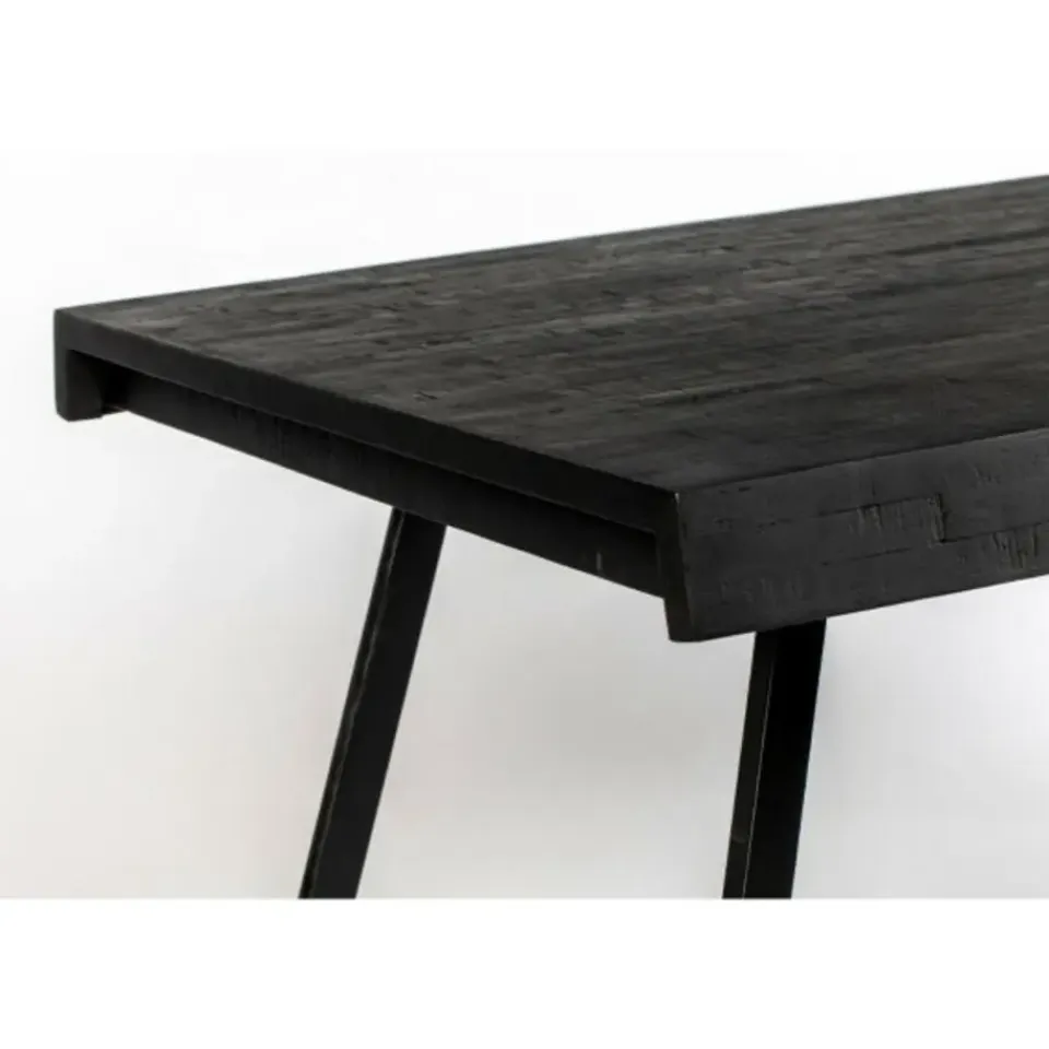 - Eettafel met een mooie combinatie van zwart metaal en hout.