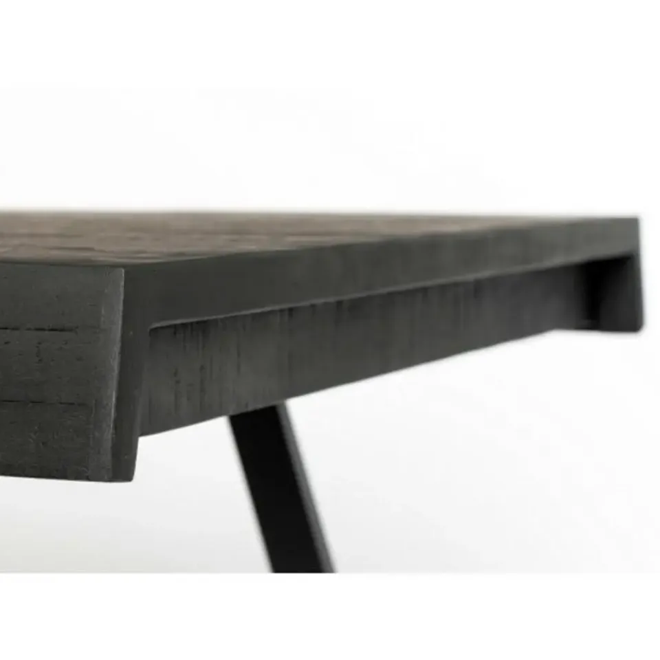 - Het tafelblad is ingelegd met stroken gerecycled teakhout, verkrijgbaar in het zwart of licht teakhout.