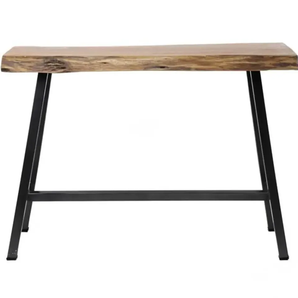 Deze bartafel is uitgevoerd in een 2+3 centimeter opgedikt acacia-blad. De prachtige boomstam-vorm maakt de tafel natuurlijk en robuust in de keuken of woonkamer. Het metalen frame is netjes afgewerkt met eenzwarte poedercoatfinish. Bartafel live edge is 125 centimeter breed en 46 centimeter diep, waardoor de tafel ideaal is voor kleinere eethoeken.