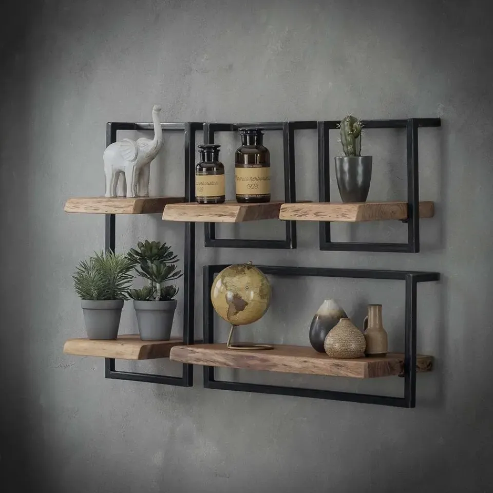Deze wandplank is uitgevoerd in een houten acacia plankje van 61 centimeter breed, bevestigd aan een vintage stalen frame. De plank heeft aan het uiteinden een stoere afgeschuurde boomstamvorm. Deze wandplank is een onderdeel van de complete set wandplanken, waardoor er verschillende decoratieve schappenwanden te maken zijn . De wandplank is middels twee bevestigingsogen eenvoudig aan de wand te monteren.