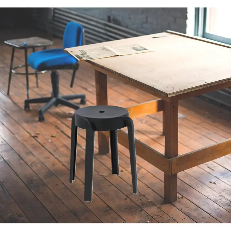Handig bijzet krukje gemaakt van stevig kunststof, model Astora, in de kleur zwart. Het krukje heeft een strakke uitstraling en creeert eenvoudig een extra zitplaats voor gasten. Altijd handig om in huis te hebben. Bovendien zijn de krukjes stapelbaar en daardoor eenvoudig op te bergen. Het krukje kan maximaal 100 kg dragen. Geschikt voor binnen en buiten.