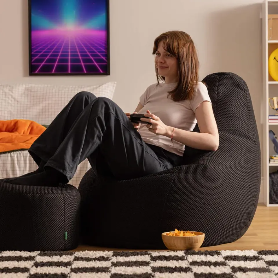 SPELEN OVERAL: Deze zitzak met voetenbank is ideaal voor lange gamingmarathons, in de woonkamer of slaapkamer. Het perfecte cadeau voor gamers van alle leeftijden.