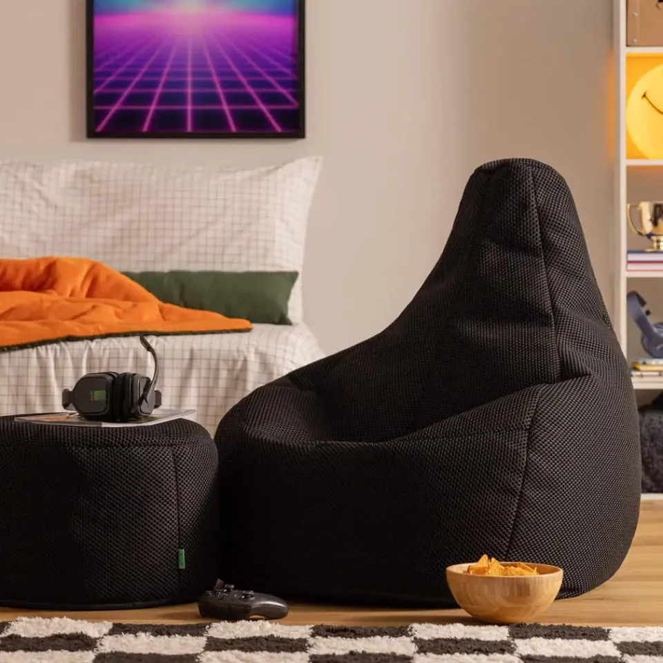 ONDERSTEUNENDE RECLINER & VOETENBANK: Deze gaming zitzak met voetenbank is ergonomisch ontworpen in een recliner-vorm, met een hoge rugleuning en slimme interne stofstructuur voor ultiem comfort tijdens lange gamesessies. Door de aard van met bonen gevulde producten kunnen de afmetingen licht variëren.