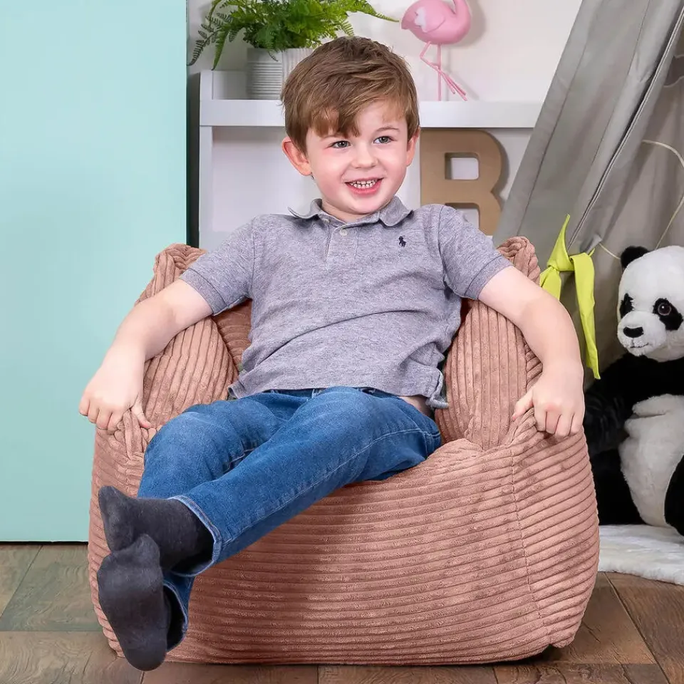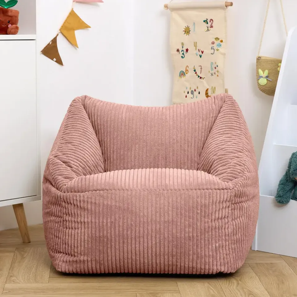 KLEINE LUXES; Kinderen zullen dol zijn op deze super zachte corduroy zitzak. Wanneer inzakcomfort samengaat met verfijnde stijl, zullen ze nergens anders meer willen zitten!