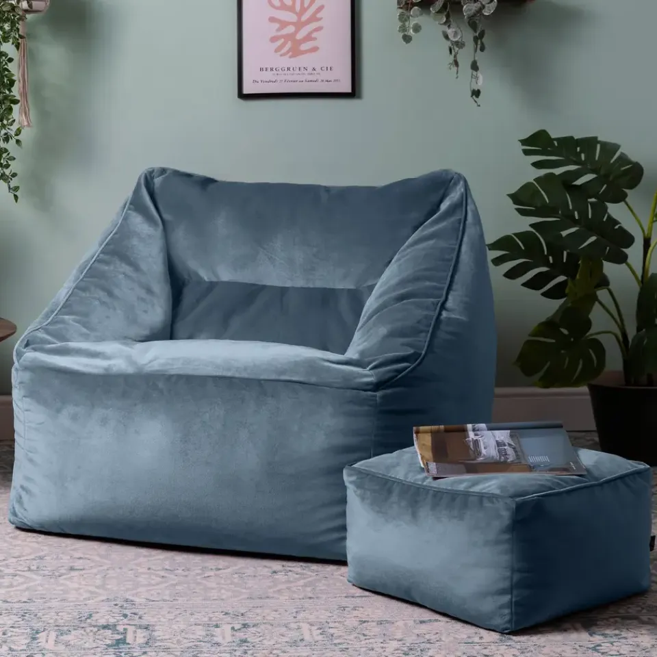 icon Zitzak en Poef Natalia – Fluwelen Zitzak – Blauw Outlet
