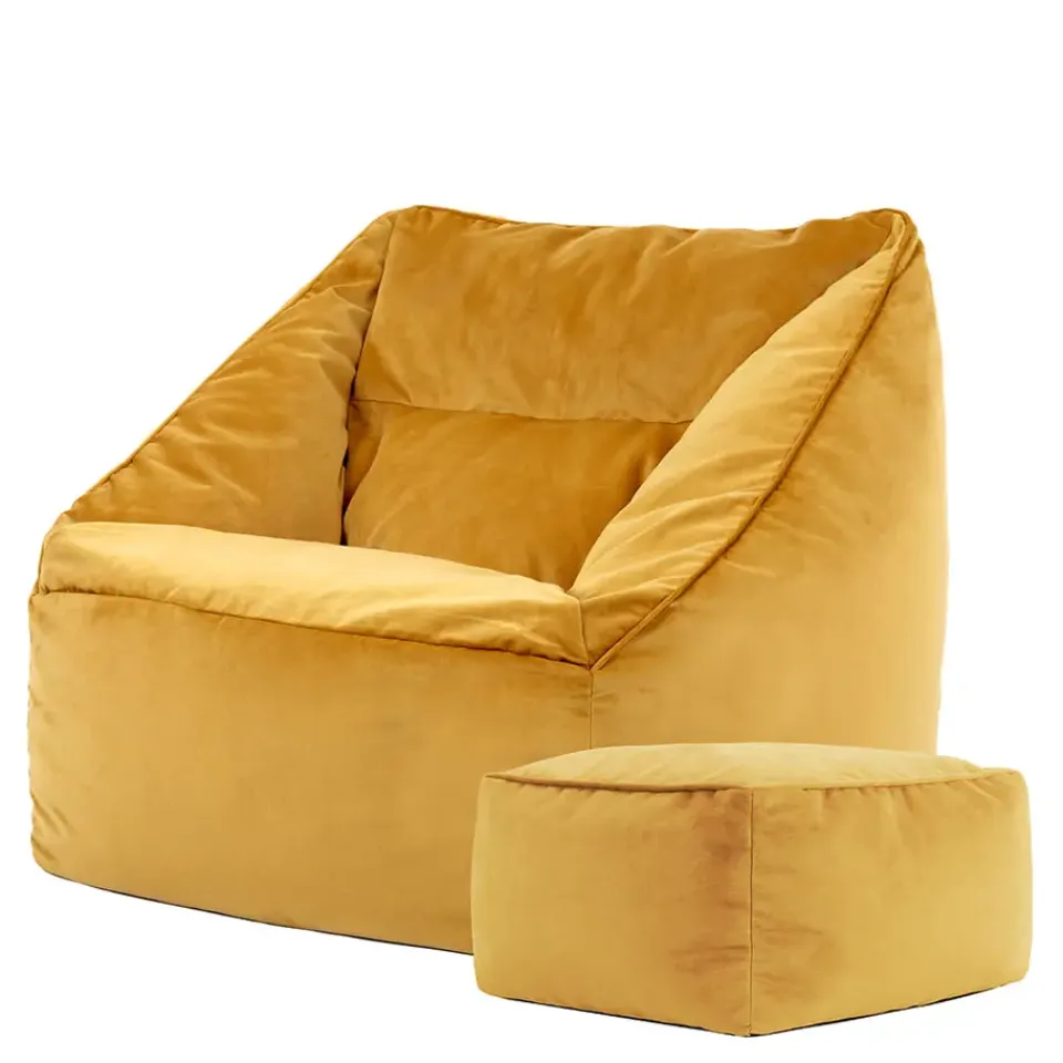 icon Zitzak en Poef Natalia – Fluwelen Zitzak – Geel Discount
