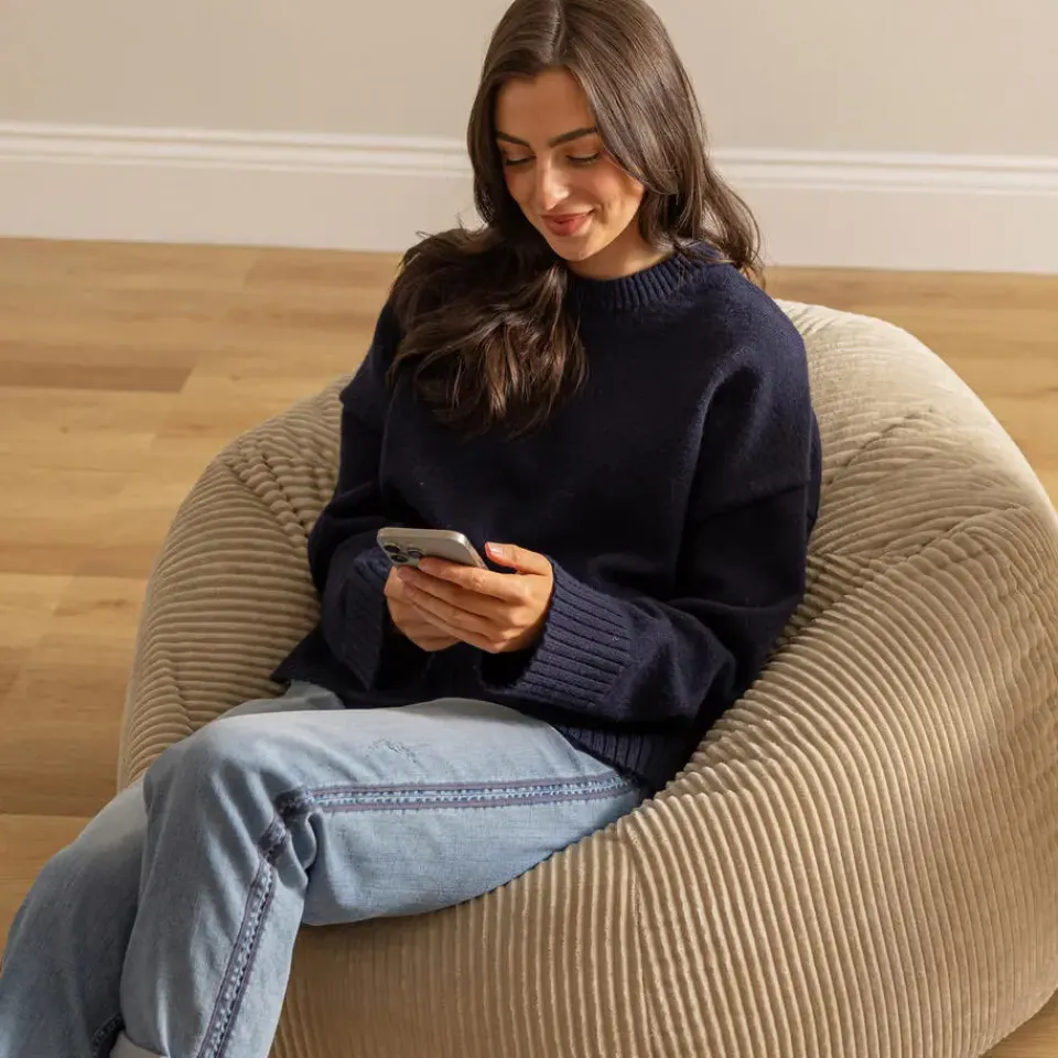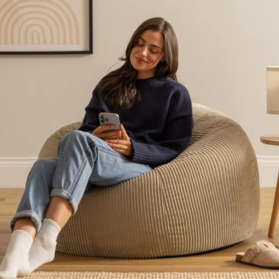 ZACHT CORDUROY: De duurzame structuur van dit zachte corduroy is bestand tegen slijtage, zodat je zitzak er altijd fris en zacht uitziet en nauwelijks onderhoud nodig heeft. Hij is ontworpen voor langdurig gebruik en heeft bovendien dubbelgestikte naden en een dubbele rits voor extra stevigheid.