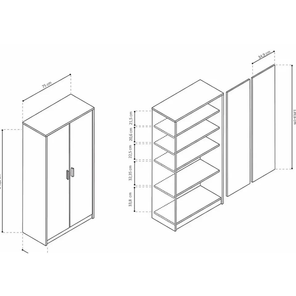 - Efficiënte opbergruimte: 2 deuren met een goed georganiseerde indeling voor kleding en accessoires.