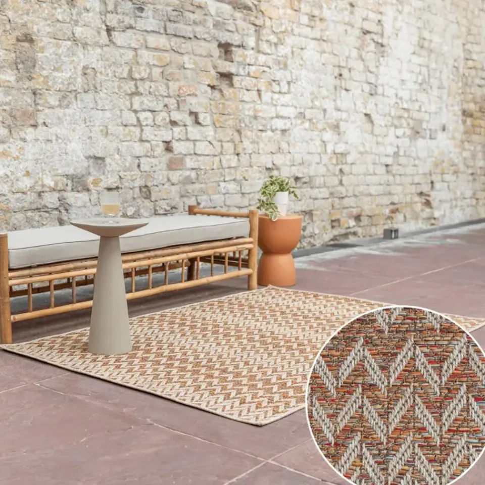 Buitenkleed Ibiza Elay van Interieur05 is een buitenkleed met een verassend ontwerp. Zo krijg je nooit genoeg van de echte Ibiza sfeer die de Elay met zich meebrengt. Het kleed is geschikt voor binnen en buiten. De Elay van Interieur05 is beschikbaar in 3 verschillende maten: 160 x 230 cm, 200 x 290 cm en 240 x 330 cm. Het vloerkleed is gemaakt van 100% Polypropyleen. De dikte van het kleed is 10mm en door de goede kwaliteit zal het kleed lang meegaan. Het kleed kan prima tegen een regenbui of viezigheden en is makkelijk schoon te krijgen.