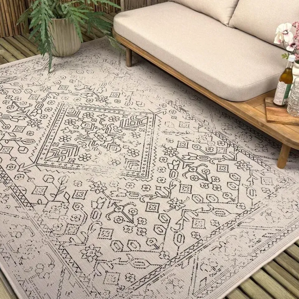 Geef je buitenruimte een stijlvolle en tijdloze uitstraling met het Nova buitenkleed van Interieur05. Dit elegante buitenkleed heeft een vintage patroon dat direct sfeer en karakter toevoegt aan je terras, tuin of balkon. Verkrijgbaar in de kleuren zwart/wit, linnen en blauw, past het moeiteloos in verschillende interieurstijlen. Kies uit een rechthoekig of rond model, met afmetingen van 160×230 cm, 200×290 cm, 240×340 cm (rechthoekig) of 200 cm en 240 cm (rond).