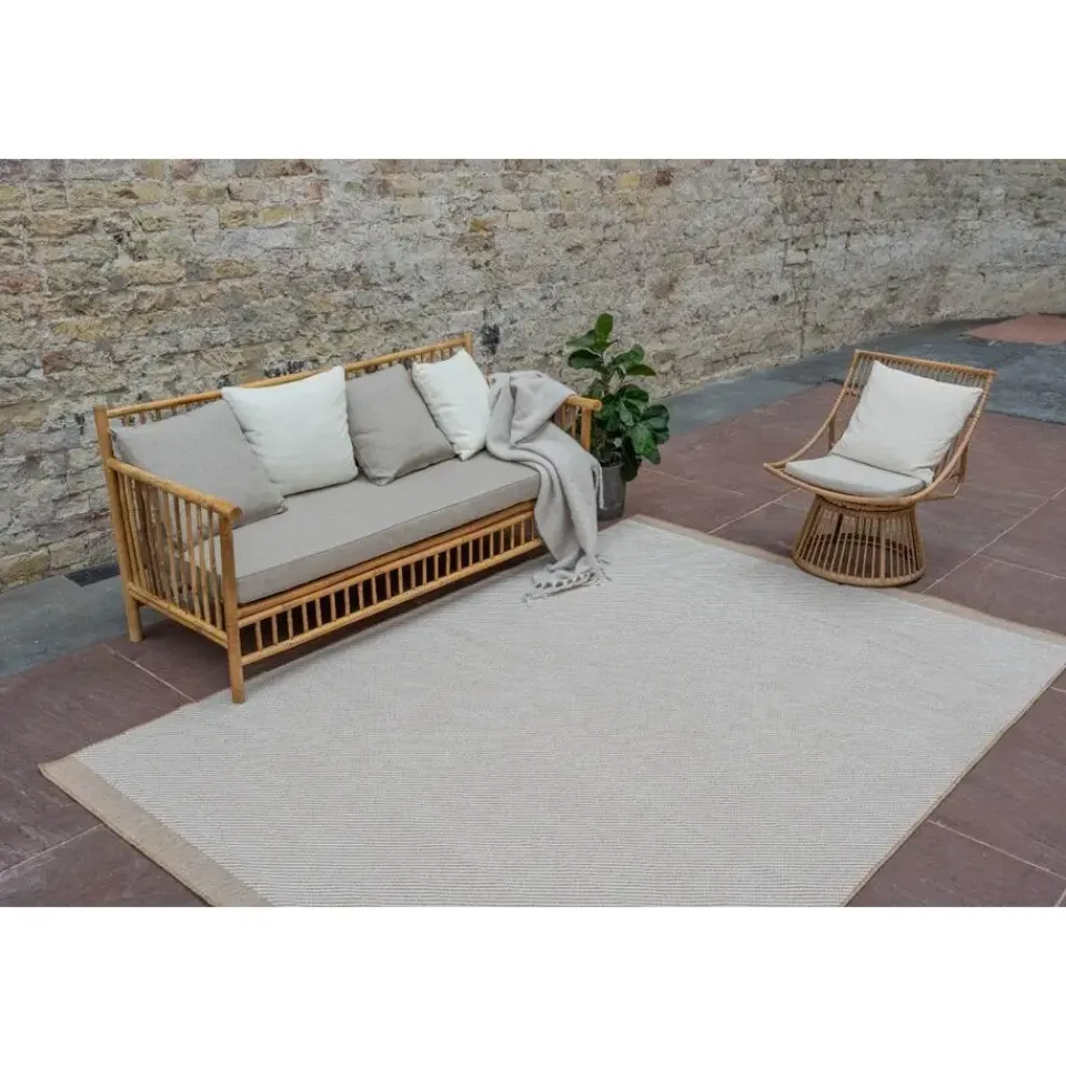 Het jute buitenkleed naturel Border van Interieur05 is een buitenkleed met een verassend ontwerp. Zo krijg je nooit genoeg van de echte natuurlijke sfeer die de Border met zich meebrengt. Het kleed is geschikt voor binnen en buiten. De Border van Interieur05 is beschikbaar in 3 verschillende maten: 160 x 230 cm, 200 x 290 cm en 240 x 340 cm. Het vloerkleed is gemaakt van 100% Polypropyleen. De dikte van het kleed is 10mm en door de goede kwaliteit zal het kleed lang meegaan. Het kleed kan prima tegen een regenbui of viezigheden en is makkelijk schoon te krijgen.