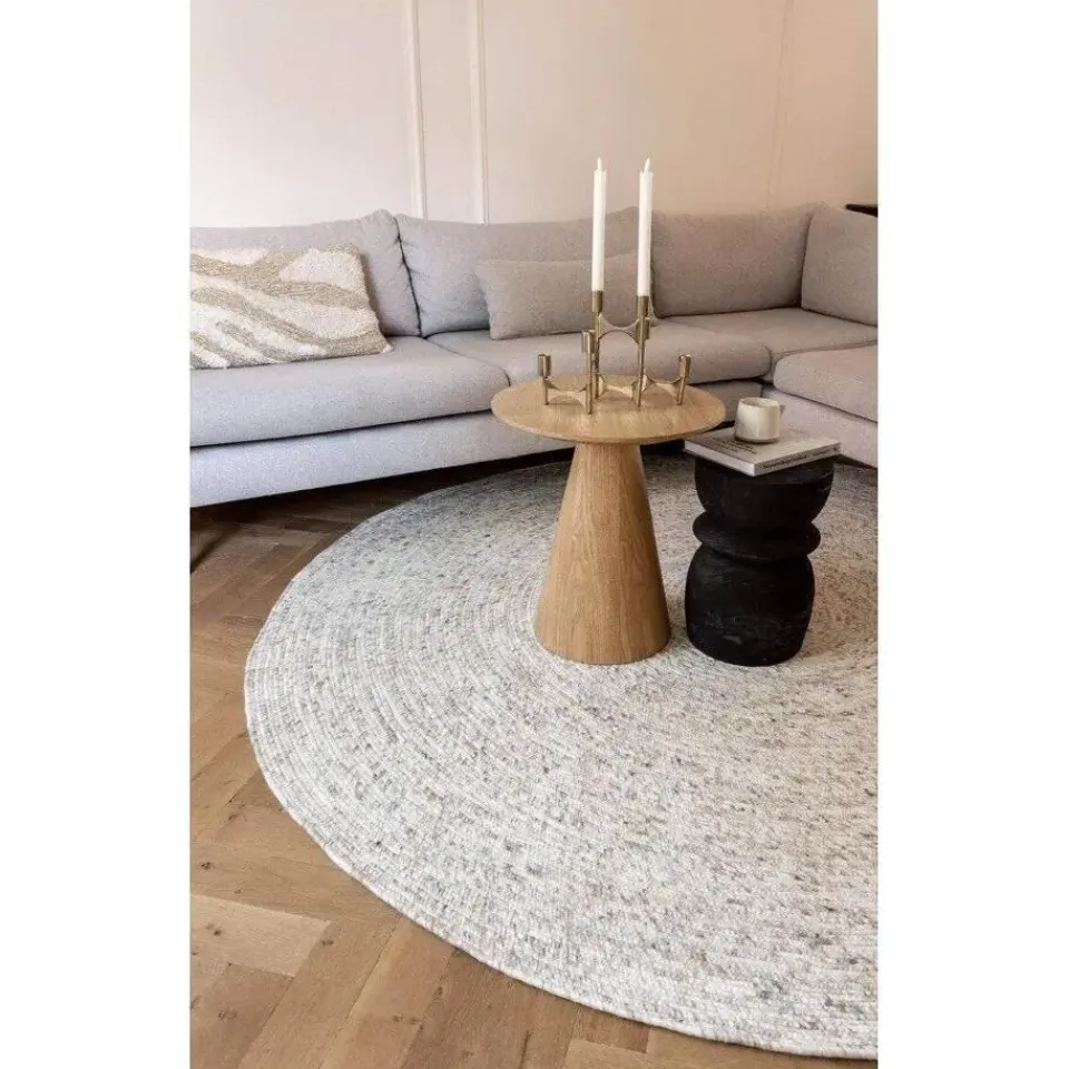 Het ronde wollen vloerkleed Gapo is verkrijgbaar is 6 kleuren Dankzij de bijzondere kleur die in het tapijt is verwerkt, past het vloerkleed bij diverse interieur stijlen. Naast de veelzijdigheid in kleur en stijl, is het karpet letterlijk veelzijdig: het kleed kan aan beide zijden gebruikt worden. Het vloerkleed heeft namelijk geen backing. En een wollen kleed zorgt natuurlijk voor een warme, knusse en zachte uitstraling in je woon- of slaapkamer maar ook in je kantoor. Daarnaast voelt het kleed heerlijk aan je voeten! Dit wollen tapijt is verkrijgbaar in vier kleuren en vier verschillende maten: 150ø,180ø, 220ø en 250ø. Voor iedereen zit er wel een passend formaat tussen.