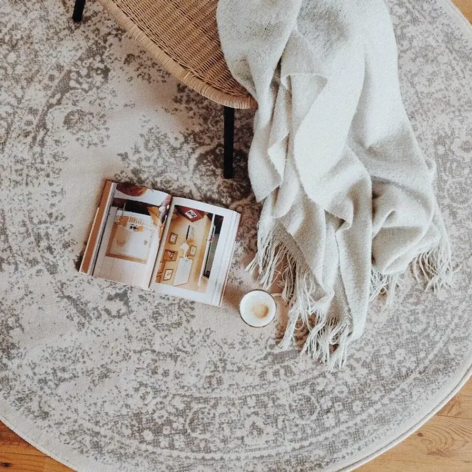 Het vintage vloerkleed Keshan in de ronde vorm is leverbaar in 6 verschillende kleuren. Dit vloerkleed is gemaakt van 100% polypropleen en wordt gemaakt in Europa. Het vloerkleed is leverbaar in de maat 160cm rond en de 190cm rond. Door de diverse kleuren die in dit kleed zijn verwerkt is het prefect te combineren voor in de woonkamer, slaapkamer of kantoor. Opzoek naar een rechthoek variant? Deze is ook beschikbaar in diverse kleuren en de afmetingen 190×280 en 160x230cm