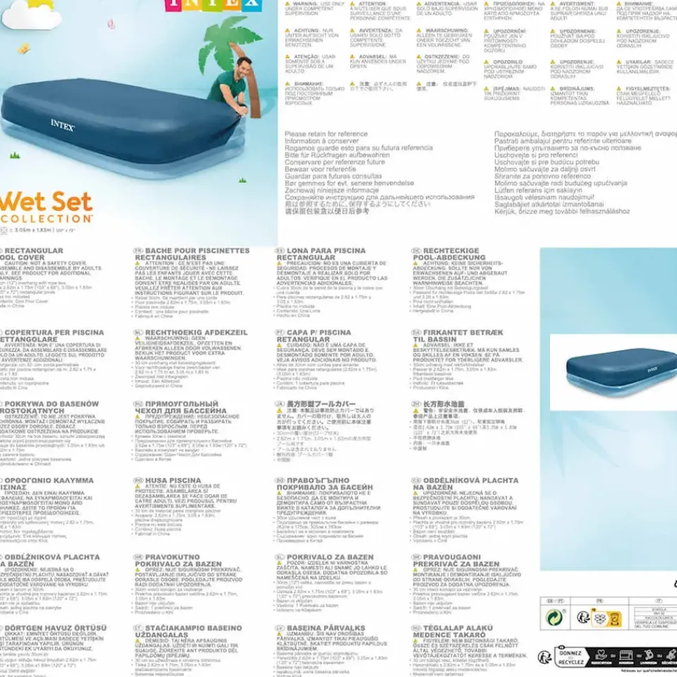 Deze Intex rechthoekige zwembadafdekking 58412NP is speciaal ontwikkeld voor de Intex Swim Center Family zwembaden (305 x 183 cm of 262 x 175 cm).