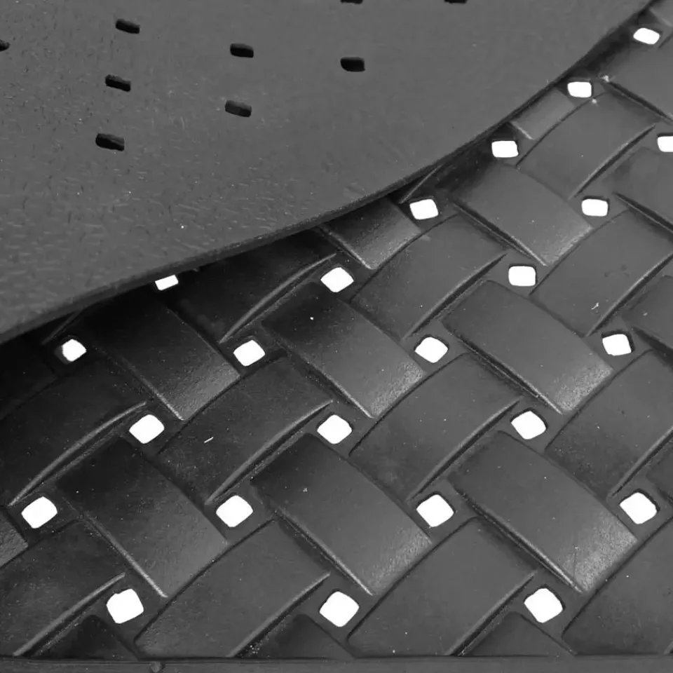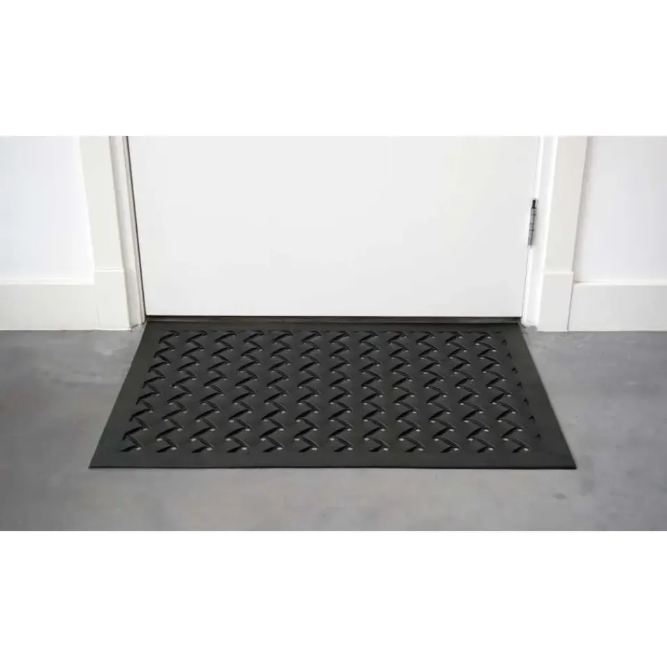 Deze rubber mat is perfect te gebruiken als deurmat. Het gevlochten patroon geeft de mat een moderne look. Met een breedte van 91,5 cm past deze voor vrijwel iedere voor- of achterdeur.