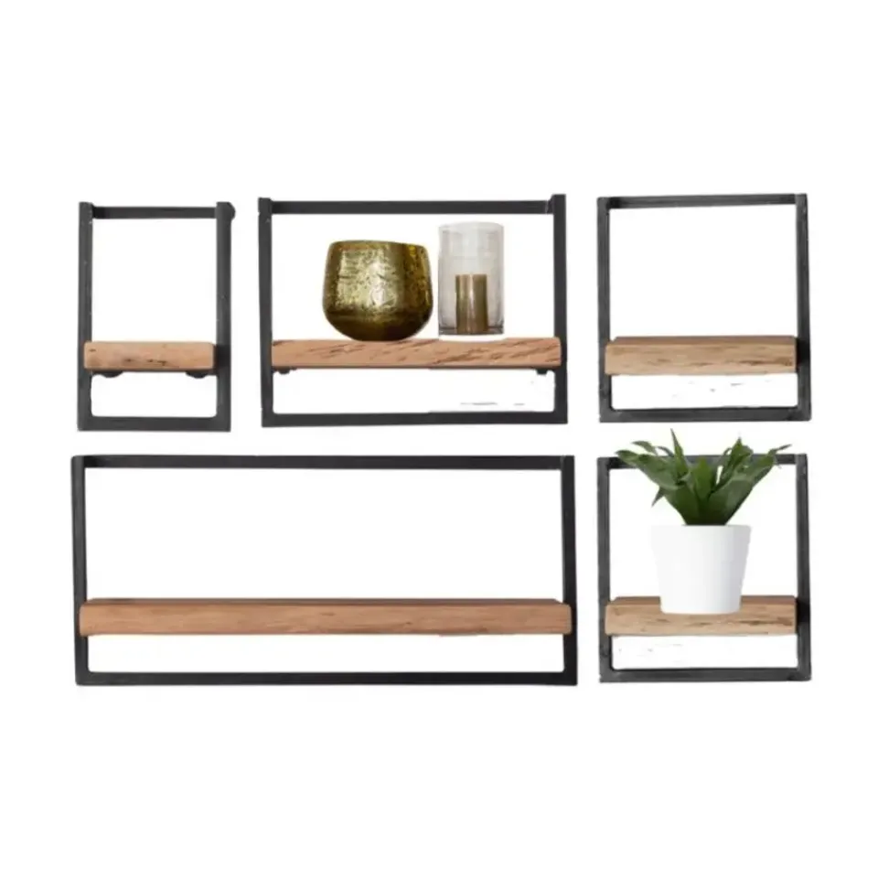 Met dit wandrek kun je heel creatief je muur aankleden. Je hangt ze ten opzichte van elkaar zoals jij dat precies wil. Je maakt er een heuse collage mee. Het acaciahout brengt een levendige noot in je woning. Het heeft een mooie nerfstructuur en een warme gloed. Het is dan ook een mooi constrast met de strakke zwarte metalen frames. Deze materialen kunnen je inspireren om accessoires bij elkaar te zoeken om de rekken te decoreren. Denk aan houten sculpturen en diverse metalen objecten. Of je stalt er je foto’s of verzameling op uit. Gebruik het in je keuken om je voorraadpotten en specerijen in op te bergen. Het kan allemaal!