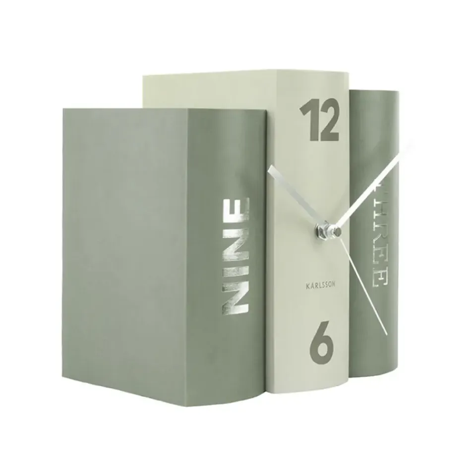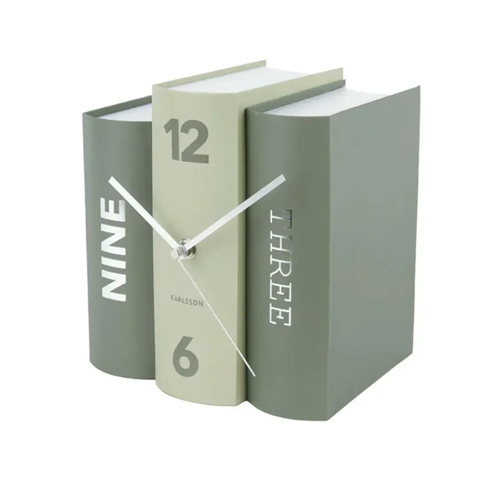 Boekenwurmen opgelet! Deze klok van Karlsson is nauwelijks van een stel boeken te onderscheiden. Het design van tafelklok Book uit de collectie van Karlsson bestaat uit 3 boeken die tegen elkaar aan staan. Deze moderne speelse tafelklok, ontworpen door Sjoerd van Heumen voor Karlsson, is beschikbaar in verschillende kleuren; grijs, zwart en roze. Een echte eyecatcher op je bureau of in de boekenkast.