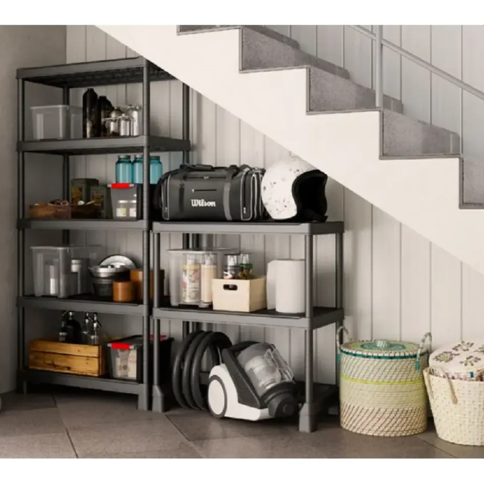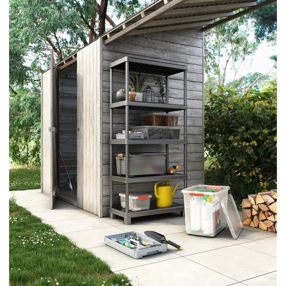 Het kunststof opbergrek Keter Tribac geeft je complete vrijheid in het opzetten en inrichten van jouw bergruimte. Op de staanders van de kunststof stellingkast kun je namelijk op gewenste hoogte de planken plaatsen. Ook kan het opbergrek in twee delen naast elkaar gemonteerd worden om zo een laag opbergrek of werkbank te creëren. Een ideale stellingkast voor in de schuur, bijkeuken, zolder of kelder!