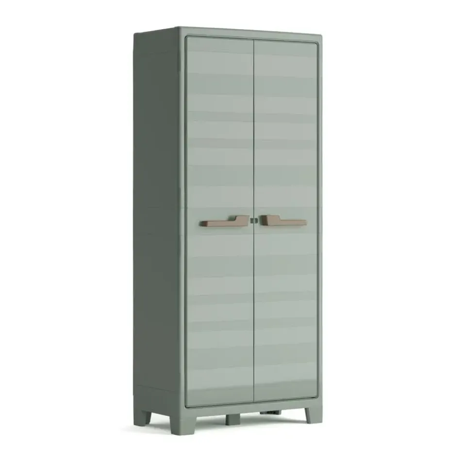 De Keter Planet Hoge opbergkast is gemaakt uit meer dan 80% gerecycled kunststof. Deze opbergkast met deuren is perfect voor bijvoorbeeld in je berging, garage of kelder. Deze opbergkast kan ook buiten worden gebruikt, maar we adviseren dan wel om deze tuinkast onder een overkapping te plaatsen. De hoge stellingkast heeft 4 planken die ieder 15kg kunnen dragen. De planken zijn ook in hoogte verstelbaar zodat je de indeling naar wens kunt aanpassen.
