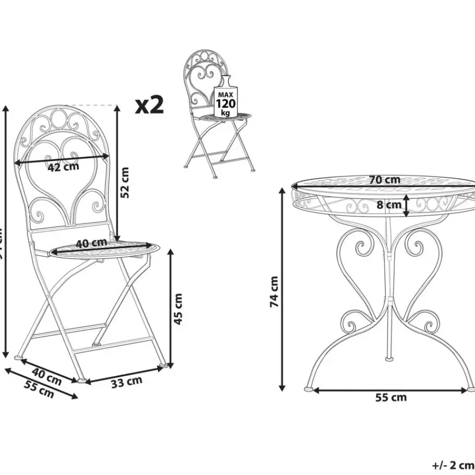 Belangrijkste eigenschappen: Perfecte combinatie van kleuren en materialen, Chique uitstraling, Modern terras- en tuinmeubilair, Solide afwerking, Hoogwaardig materiaal, Vlekbestendig, Opgevouwen op te bergen