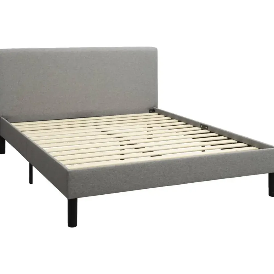 Bed Stijn is een tweepersoonsbed (160×200 cm) met een moderne en eenvoudige look. Het bed heeft een hoofdbord en ronde poten en is bekleed met de stof barrel in de kleur grijs.