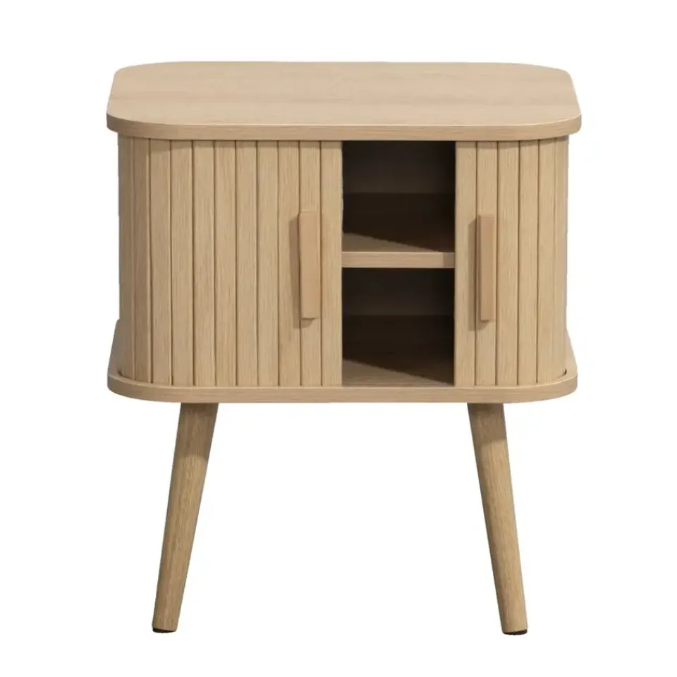 Bijzettafel Peter is een sfeervol tafeltje met een natuurlijke uitstraling en past in vrijwel ieder interieur. De bijzettafel is gemaakt van hout en heeft schuifdeurtjes en een plank om spullen handig op te bergen. Plaats de tafel bijvoorbeeld in de hal of als nachtkastjes bij het bed. De bijzettafel heeft een afmeting van 50x45x40 cm.