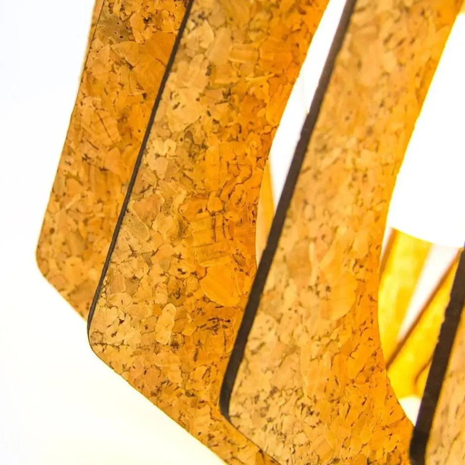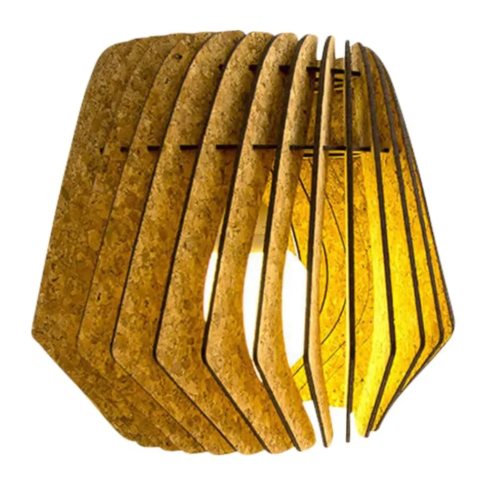 Deze zijn bekleed met kurk en worden stuk voor stuk in het frame geschoven. Hierdoor wordt er een ruimtelijk raster gecreëerd dat een heel bijzonder lichteffect geeft. De boemerangs worden met een kleine hoek geplaatst, waardoor een speciaal ontwerp ontstaat. Je kunt de Bomerango lamp gebruiken als tafellamp of als hanglamp. Je kunt dus zelf bepalen wat het leukst in jouw interieur past. De Spin lamp is verkrijgbaar in vier maten: S, M, L en XL.