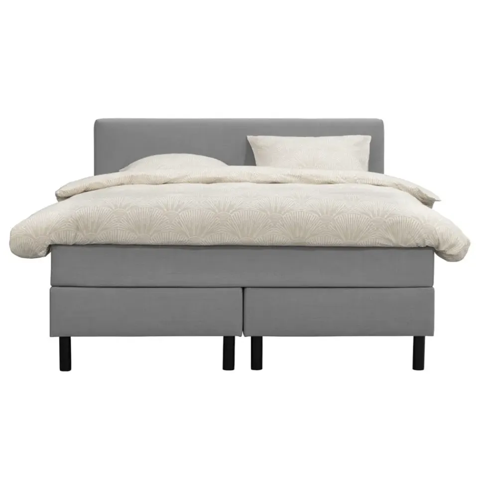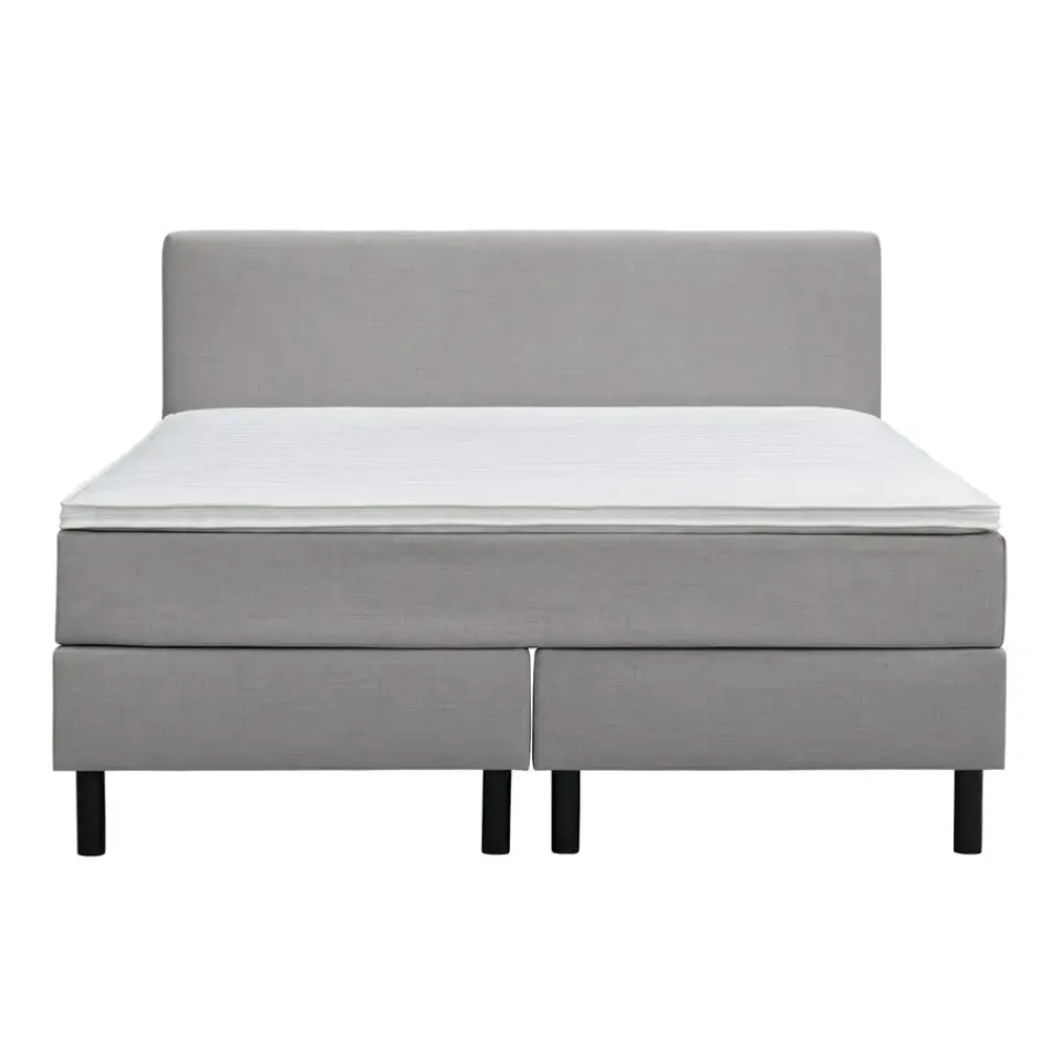 Boxspring Varberg met hoofdbord is een complete boxcombinatie en wordt geleverd inclusief pocketvering matras en een comfortschuim topmatras. Deze combinatie zorgt voor een optimale ondersteuning en een heerlijk ligcomfort. Dankzij de grijze kleur past deze boxspring perfect in een moderne slaapkamer en creëert het een stijlvolle uitstraling.