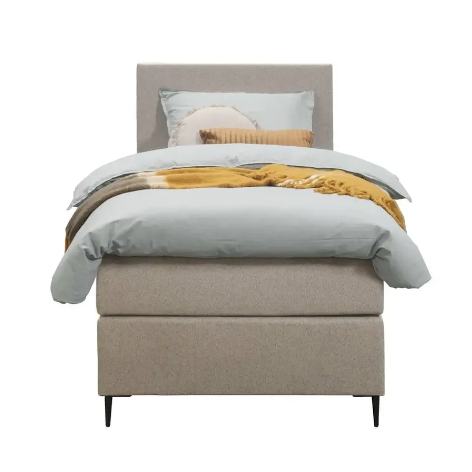 Boxspring Liv bestaat uit 1 box van 90×200 cm, 1 matras van 90×200 cm en 1 topdekmatras van 90x200x6 cm (bxhxd). Daarnaast bevat de Liv een hoofdbord met een afmeting van 90x110x7 cm (bxhxd) en 6 ronde pootjes waarvan 4 fijne metalen pootjes en 2 steunpootjes. Bij de aanschaf van een boxspring is het ook belangrijk om te letten op de hoogte van je bed. Deze boxspring heeft een comfortabele instaphoogte van 60 cm.