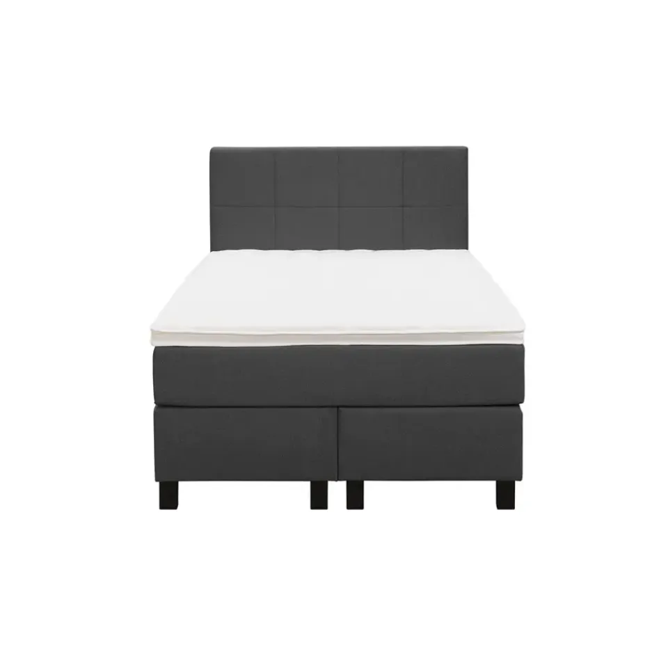 Boxspring Liv is een boxspring met een afmeting van 120×200 cm. Deze prachtige boxspring is bekleed met een grof geweven antraciete stof en heeft een landelijke uitstraling met een geblokt hoofdbord. De Liv geblokt is uitgerust met een pocketveringmatras en daarnaast ook nog een koudschuim topdekmatras voor extra comfort. Het pocketveringmatras is omkeerbaar, bestaande uit zowel een medium- als een stevige kant. Hierdoor kun je zelf kiezen wat voor jou het meest comfortabel ligt.