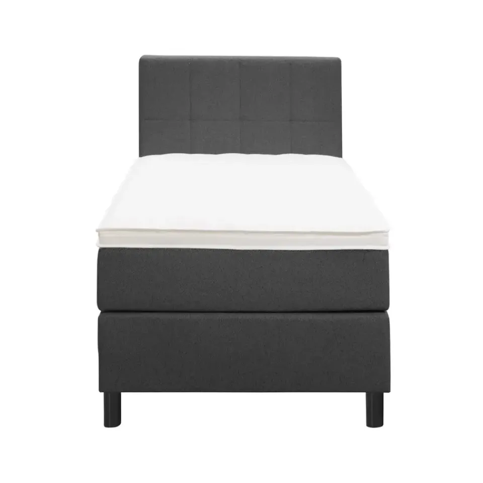 Boxspring Liv is een boxspring met een afmeting van 90×200 cm. Deze prachtige boxspring is bekleed met een grof geweven antraciete stof en heeft een landelijke uitstraling met een geblokt hoofdbord. De Liv geblokt is uitgerust met een pocketveringmatras en daarnaast ook nog een koudschuim topdekmatras voor extra comfort. Het pocketveringmatras is omkeerbaar, bestaande uit zowel een medium- als een stevige kant. Hierdoor kun je zelf kiezen wat voor jou het meest comfortabel ligt.