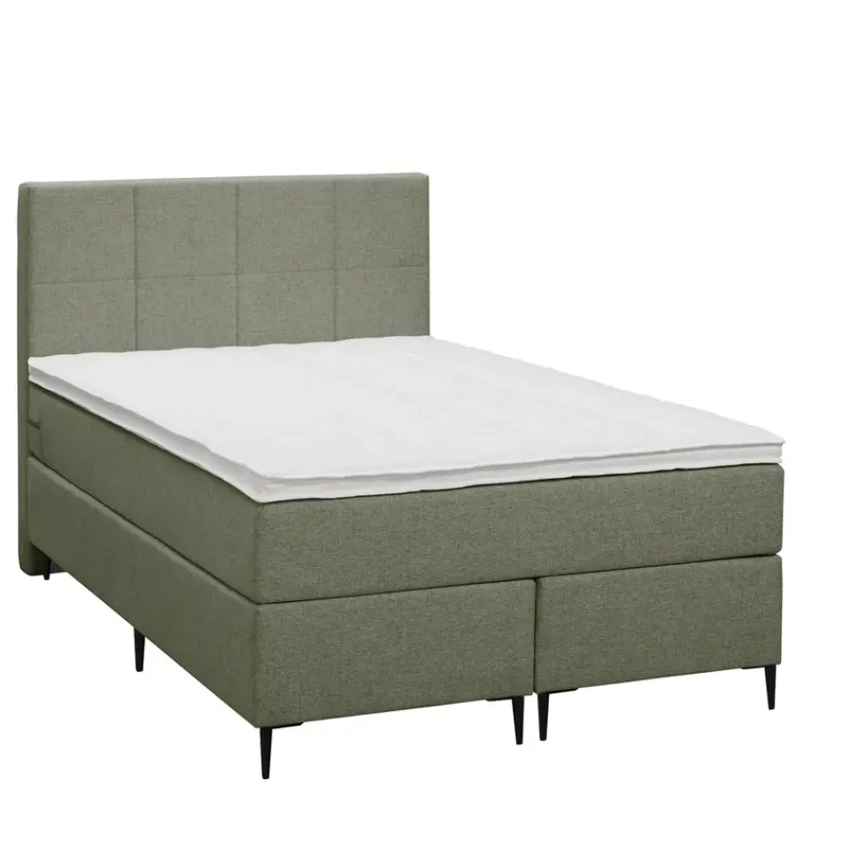 Boxspring Liv is een boxspring met een afmeting van 120×200 cm. Deze prachtige boxspring is bekleed met een fijn geweven groene stof en heeft een landelijke uitstraling met een geblokt hoofdbord. De Liv geblokt is uitgerust met een pocketveringmatras en daarnaast ook nog een koudschuim topdekmatras voor extra comfort. Het pocketveringmatras is omkeerbaar, bestaande uit zowel een medium- als een stevige kant. Hierdoor kun je zelf kiezen wat voor jou het meest comfortabel ligt.