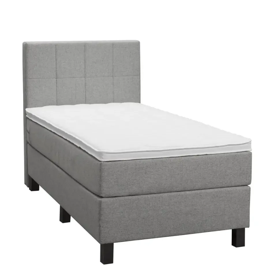 Leen Bakker Boxspring Liv geblokt – lichtgrijs – 90×200 cm – vierkante poot