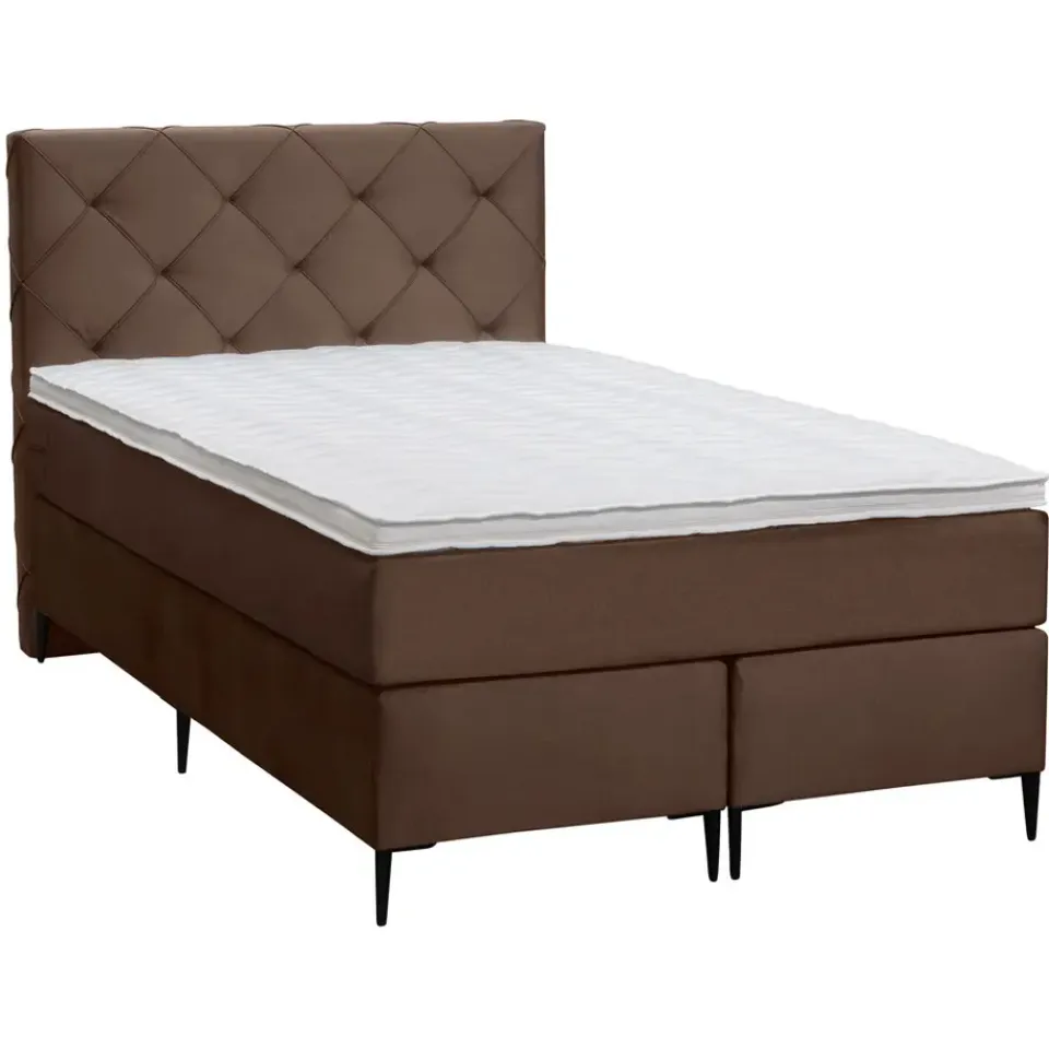 Boxspring Liv is een boxspring met een afmeting van 120×200 cm. Deze prachtige boxspring is bekleed met een velvet bruine stof en heeft een romantische uitstraling met een geruit hoofdbord. De Liv geruit is uitgerust met een pocketveringmatras en daarnaast ook nog een koudschuim topdekmatras voor extra comfort. Het pocketveringmatras is omkeerbaar, bestaande uit zowel een medium- als een stevige kant. Hierdoor kun je zelf kiezen wat voor jou het meest comfortabel ligt.