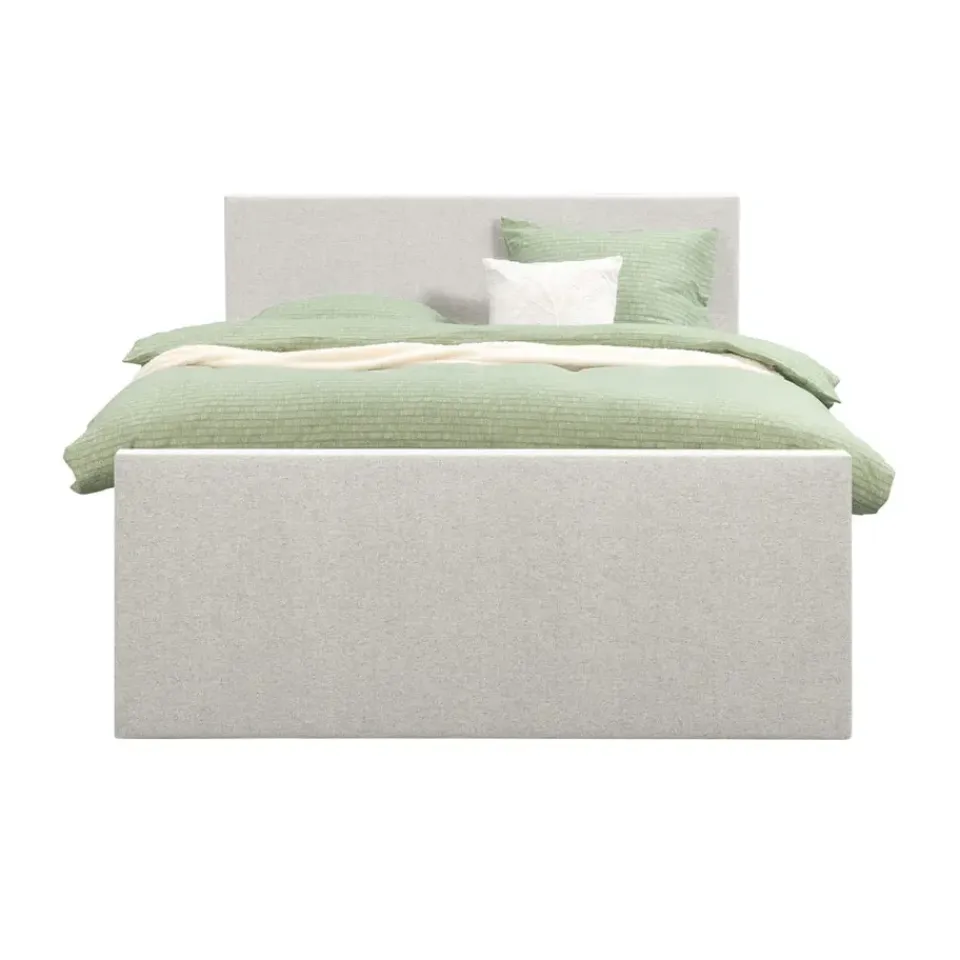 Boxspring Liv is een boxspring met een afmeting van 160×200 cm. Deze prachtige boxspring is bekleed met een fijn geweven ecru stof en heeft een strakke uitstraling met een egaal hoofd- en voetbord. De Liv egaal is uitgerust met een pocketveringmatras en daarnaast ook nog een koudschuim topdekmatras voor extra comfort. Het pocketveringmatras is omkeerbaar, bestaande uit zowel een medium- als een stevige kant. Hierdoor kun je zelf kiezen wat voor jou het meest comfortabel ligt.