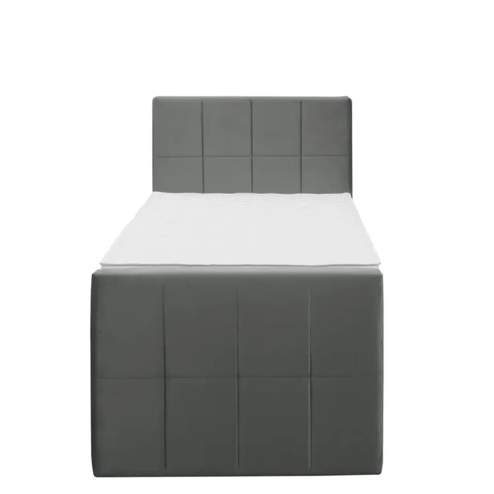 Boxspring Liv is een boxspring met een afmeting van 90×200 cm. Deze prachtige boxspring is bekleed met een velvet grijze stof en heeft een landelijke uitstraling met een geblokt hoofd- en voetbord. De Liv geblokt is uitgerust met een pocketveringmatras en daarnaast ook nog een koudschuim topdekmatras voor extra comfort. Het pocketveringmatras is omkeerbaar, bestaande uit zowel een medium- als een stevige kant. Hierdoor kun je zelf kiezen wat voor jou het meest comfortabel ligt.