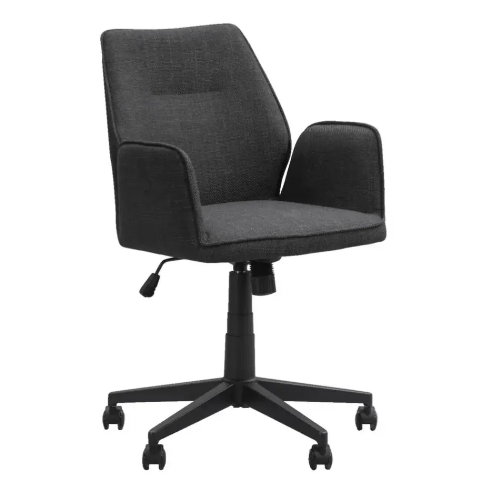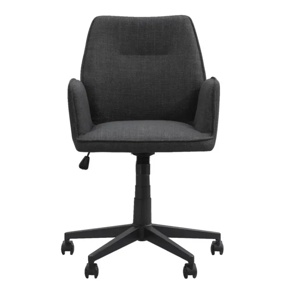 De bureaustoel Raffy in de kleur antraciet is de perfecte mix van comfortabel en stijlvol. Deze draaibare stoel is praktisch en in hoogte verstelbaar, waardoor hij ideaal is voor elke werkplek. Bovendien staat hij leuk in je interieur, met een moderne uitstraling die elke ruimte direct opfleurt. Raffy schuif je gemakkelijk bij als extra zitplek aan je eettafel en zal niet misstaan!