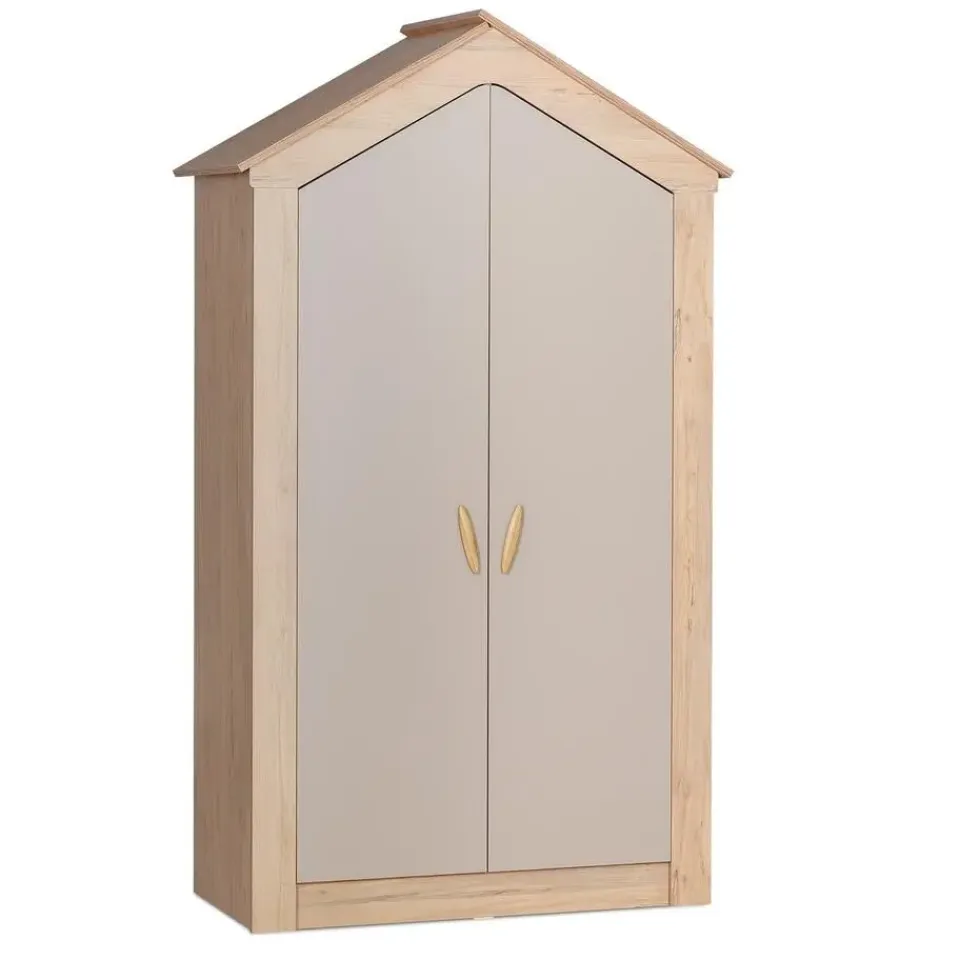 De kast heeft een warme houtlook die goed past in een gezellige kinderkamer. Dankzij de praktische indeling met hang- en leggedeelte benut je de ruimte optimaal en houd je alles netjes en geordend.
