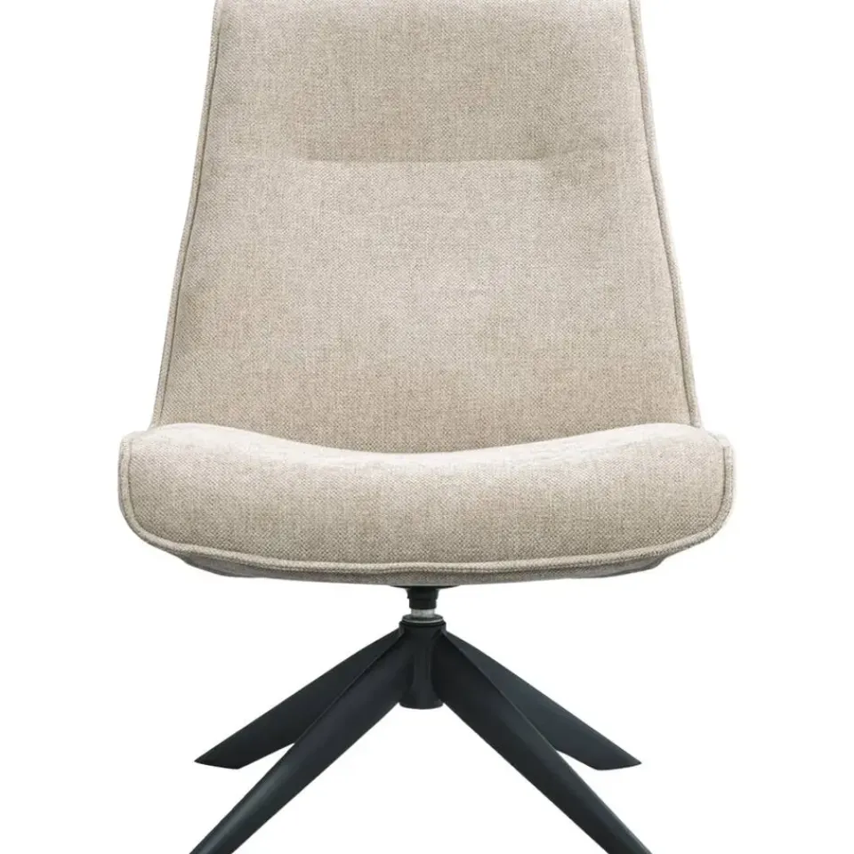 Kom volledig tot rust in Fauteuil Nora. Deze fauteuil is bekleed met een heerlijke bouclé stof in de kleur taupe en heeft 4 zwarte metalen poten waardoor hij een moderne en toch romantische uitstraling krijgt. De stoel is 360 graden draaibaar waardoor je zowel TV kunt kijken als je tot de visite kunt richten vanuit jouw ideale relaxstoel. Ook verkrijgbaar in crèmekleur. Afmeting: 85x68x71 cm (hxlxb).