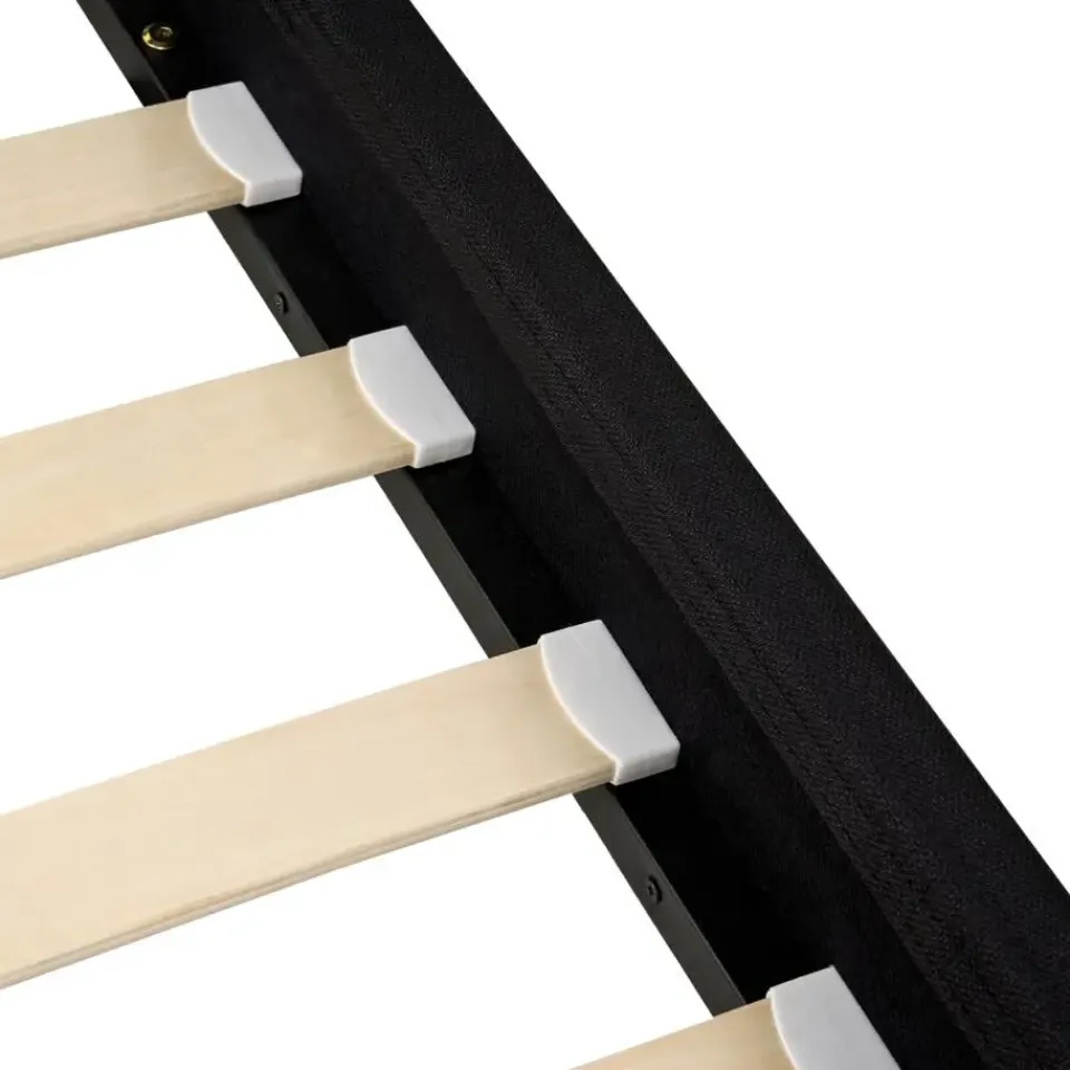 Aanbod omvat: 1 x Bedframe, 1 x Lattenbodem (28 gebogen latten), Niet inbegrepen: Matras, beddengoed en kussens, 1 x Bedframebekleding