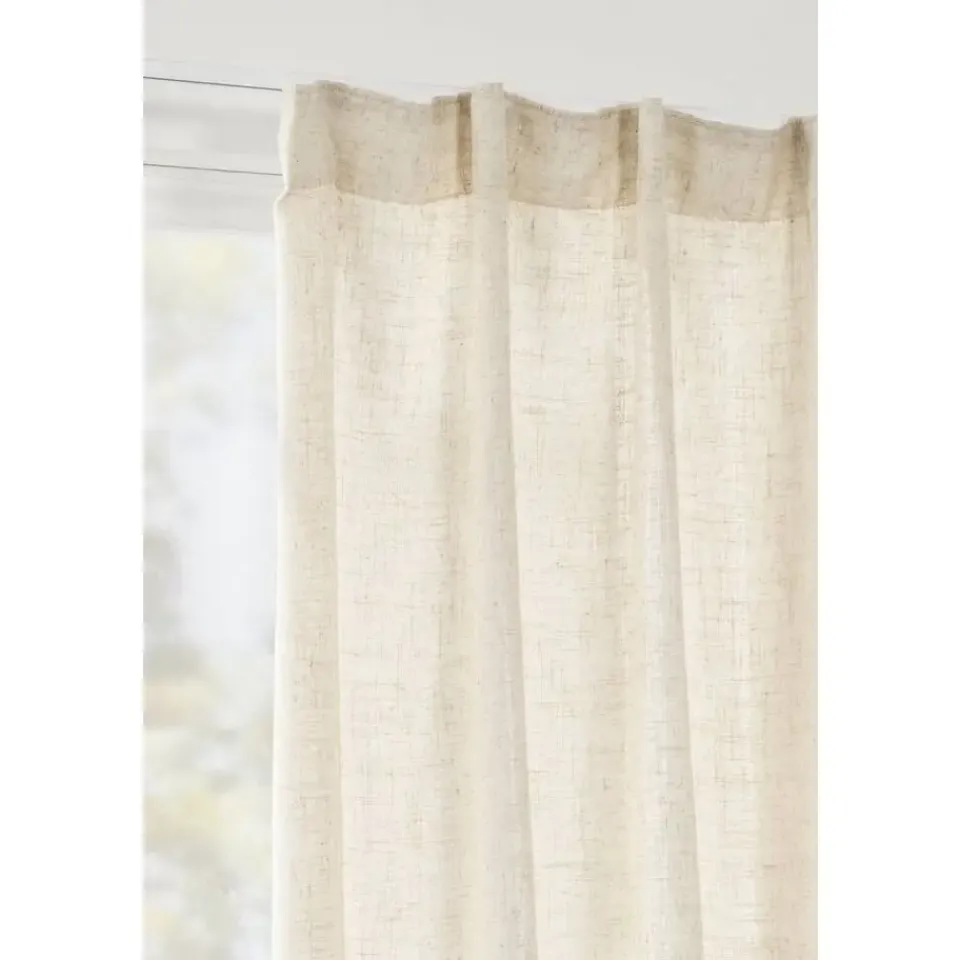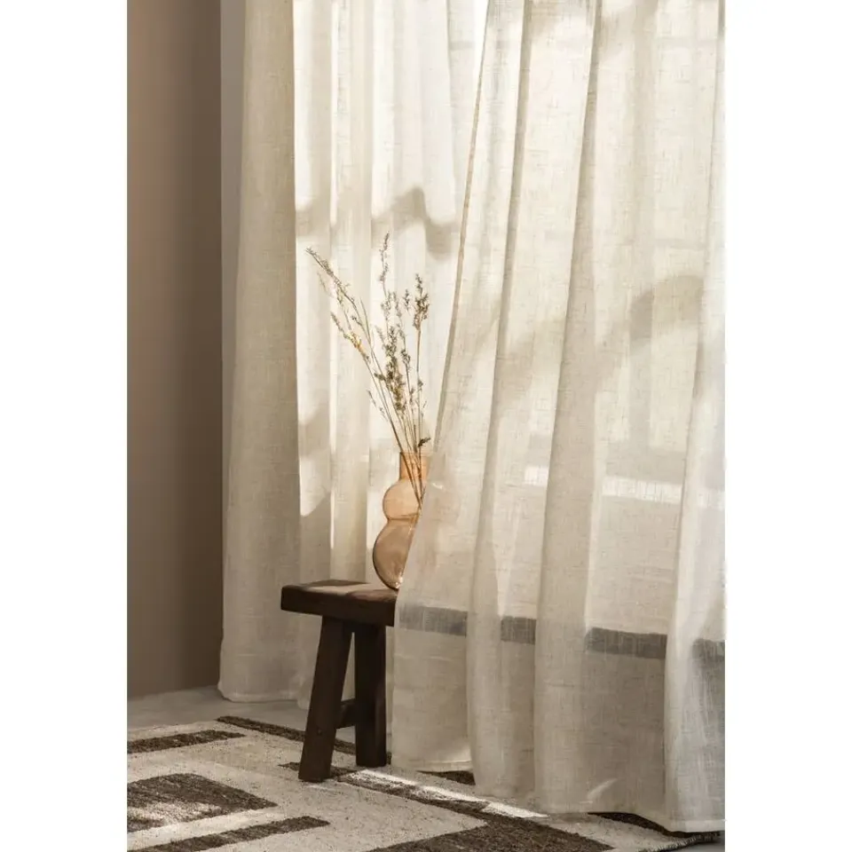 Inbetween kant en klaar gordijn Dante zand heeft een natuurlijke rustige uitstraling en is gemaakt van 15% linnen en 85% gerecycled polyester. De gordijnstof is een linnen blend en heeft daardoor een zachte look die je ruimte een luxe sfeer geeft. Deze gordijnstof heeft een GRS keurmerk, dit is een kwaliteitscertificaat voor recyclede materialen.