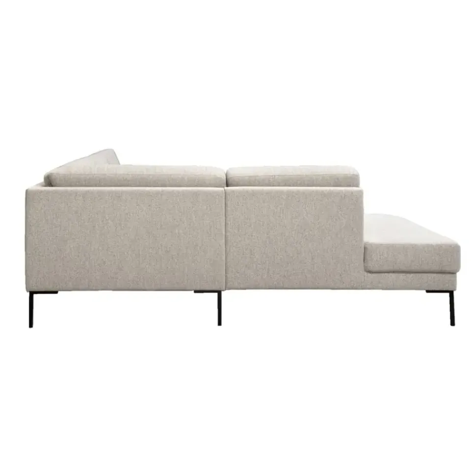 Hoekbank Tom heeft een sfeervolle Scandinavische uitstraling uitgevoerd in een beigekleurige stof genaamd Monza. De bank heeft slanke poten en is voorzien van een hoek aan de linkerkant. Hoekbank Tom biedt ruimte genoeg om met meerdere mensen op te zitten.