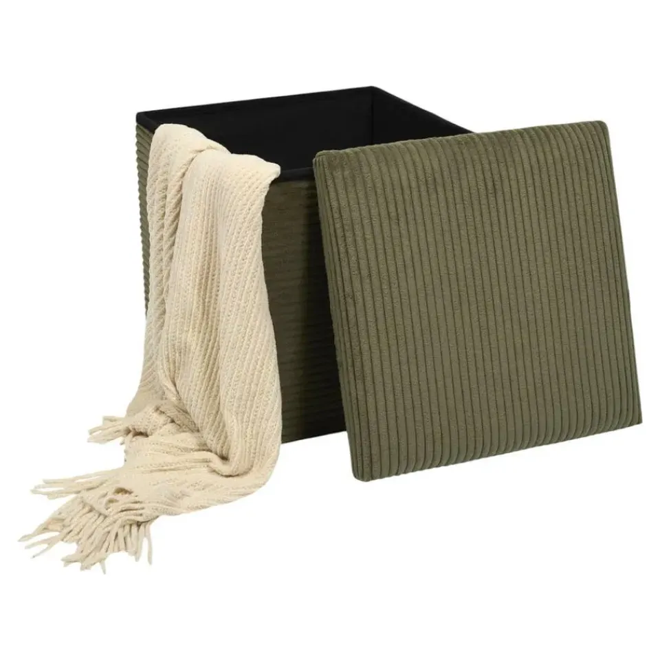 Home Deco Factory poefje met opbergruimte waar je ook op kunt zitten. Deze opvouwbare vierkante poef, ook wel een hocker genoemd is ideaal voor elk huishouden. De poef heeft een afneembare deksel, geeft je extra opbergruimte en is tevens te gebruiken als voetenbankje. Bespaar ruimte door bijvoorbeeld speelgoed of dekens erin op te bergen of de poef als zitplek te gebruiken. Een mooie aanvulling voor in huis. Kleur: groen. Materiaal: polyester en mdf. Afmeting: ca. 38 x 38 x 38 cm.