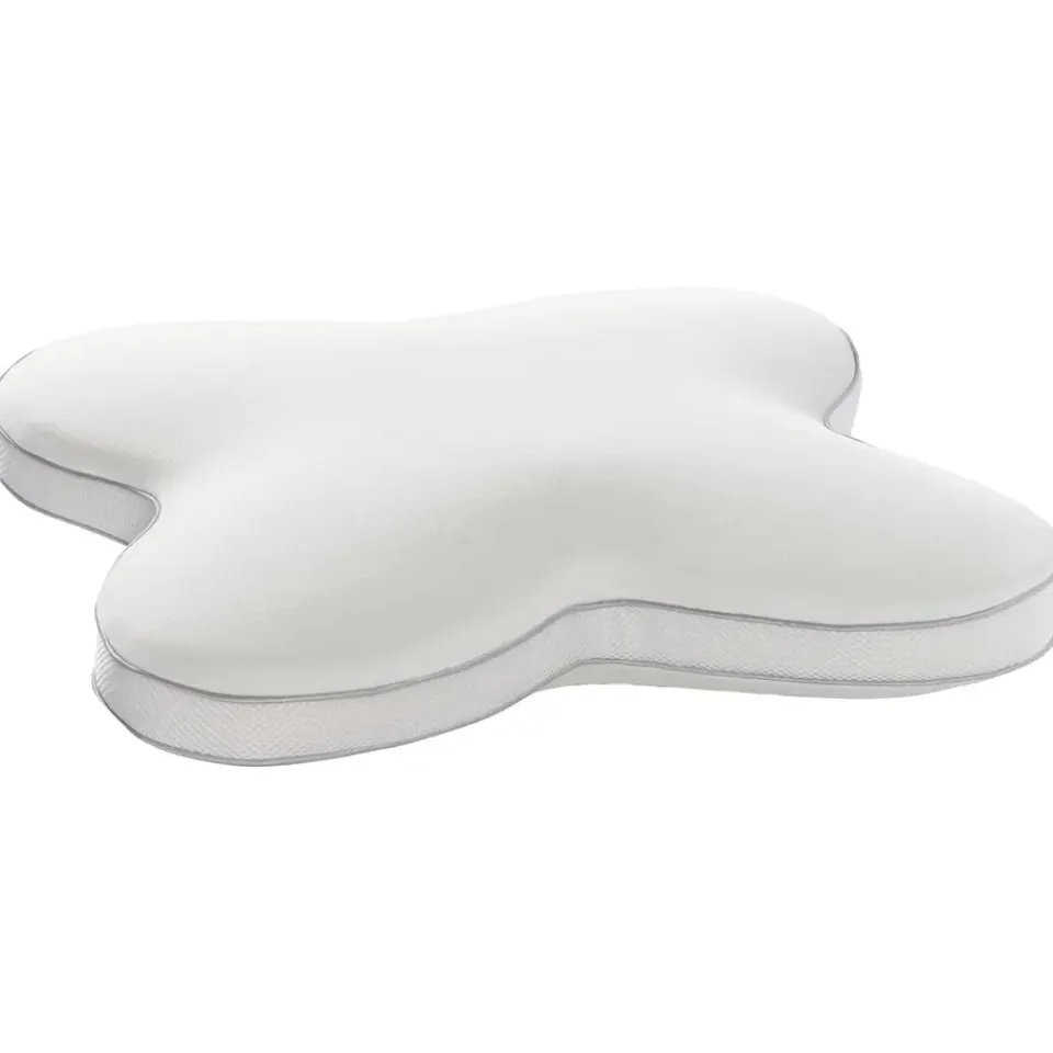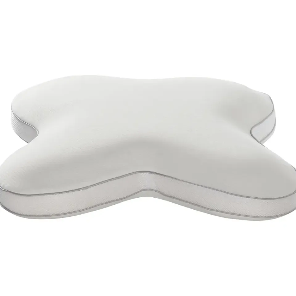 Een vlinderkussen dankt zijn naam aan de unieke vlindervorm. Het kussen heeft een uitsparing in het midden voor het hoofd, met verhoogde randen die perfect aansluiten bij de natuurlijke kromming van je nek. Deze slimme vorm zorgt voor een betere uitlijning van de nekwervels en voorkomt overbelasting van spieren en gewrichten.