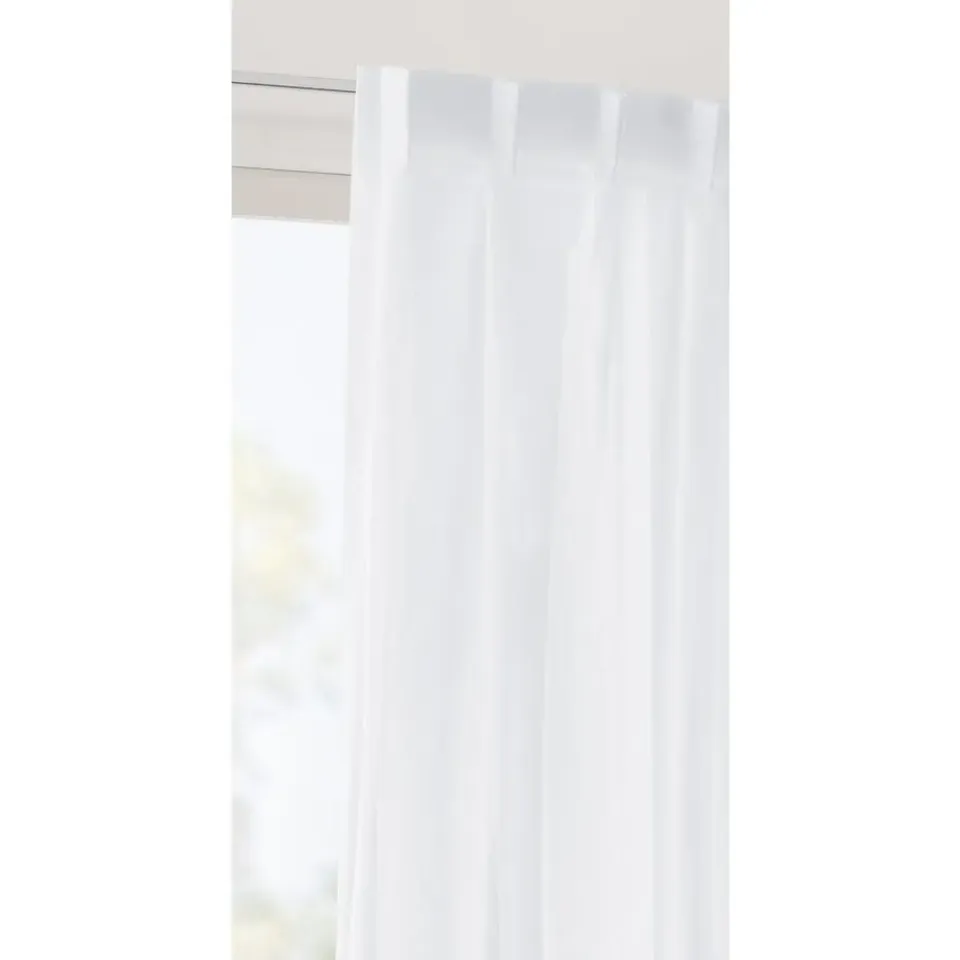 Hang deze witte vitrage Gemma voor het raam van je woon- of slaapkamer. Hierdoor ziet je huis er zowel van binnen als van buiten goed uit. Deze vitrage is gemaakt van 100% polyester en is 300 cm hoog. Wordt geleverd met loodveter.
