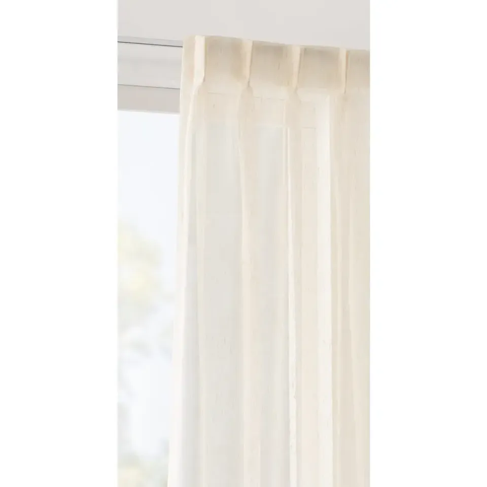 Gordijnstof Jules is een off white stof van 95% polyester en 5% linnen. Deze stof heeft een elegante uitstraling en een eigentijdse look. Met deze gordijnstof bepaal je de sfeer in huis. Deze stof is uitstekend geschikt voor de woonkamer, maar ook in de slaapkamer misstaat deze stof zeer zeker niet.